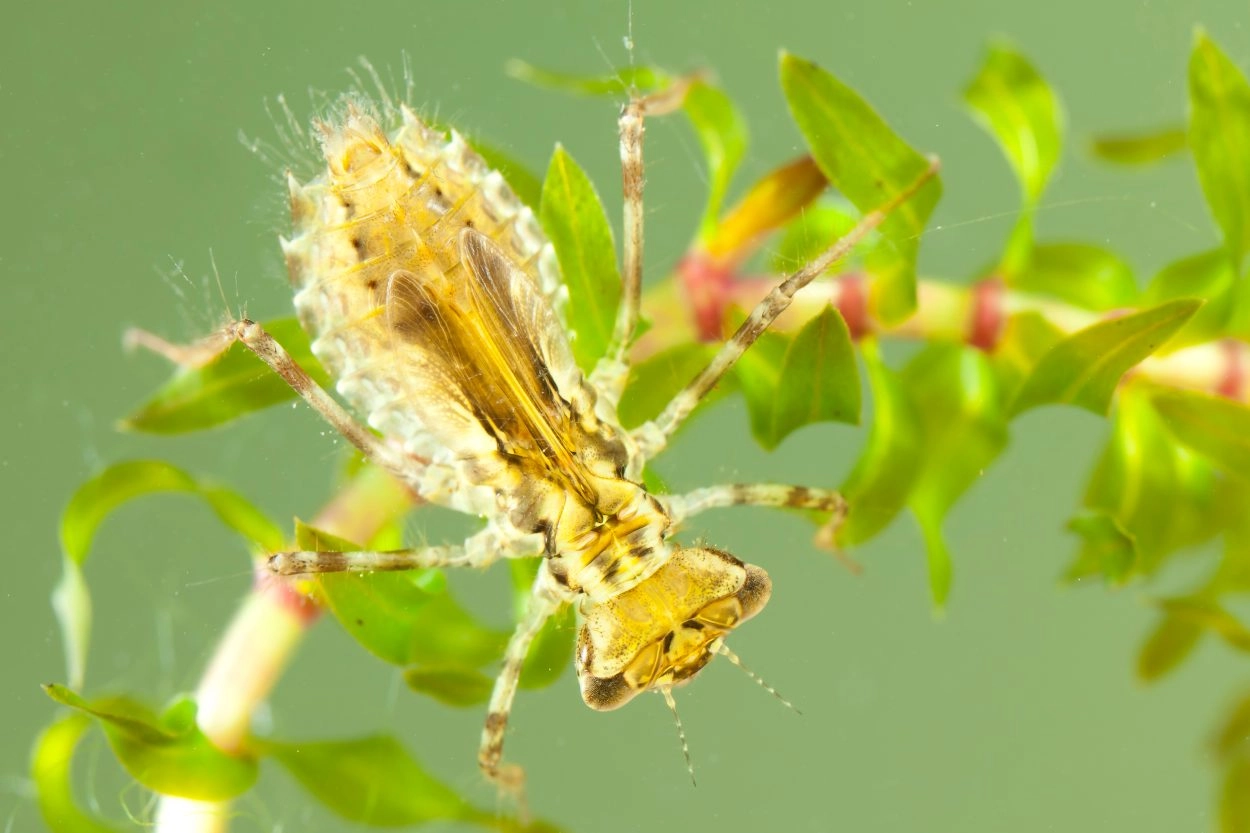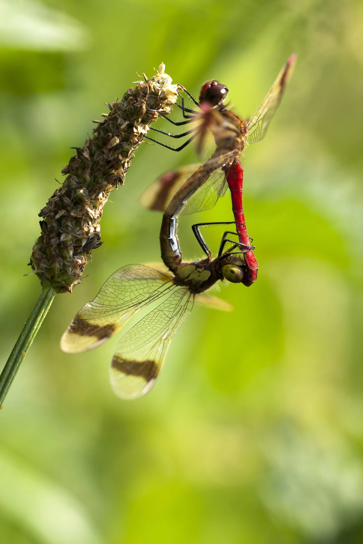 Van half juni tot half oktober, met een vliegpiek van eind juli tot begin september. Jonge imago’s vliegen weg van het water en zijn dan meestal te vinden in ruige graslanden, waar ze ondanks hun gebandeerde vleugels verbluffend weinig opvallen. In de ruige vegetatie jagen ze en overnachten ze. Geslachtsrijpe dieren keren terug naar het water, de mannetjes eerder dan de vrouwtjes. De mannetjes vliegen door de oevervegetatie op zoek naar vrouwtjes en gaan daarbij vaak zitten. Ze gedragen zich niet territoriaal. De eitjes worden in vlucht aan het wateroppervlak afgestreken, op plaatsen met veel waterplanten. Aanvankelijk gebeurt dit door het vrouwtje en mannetje samen in tandemhouding, maar al snel gaat het vrouwtje solitair verder.