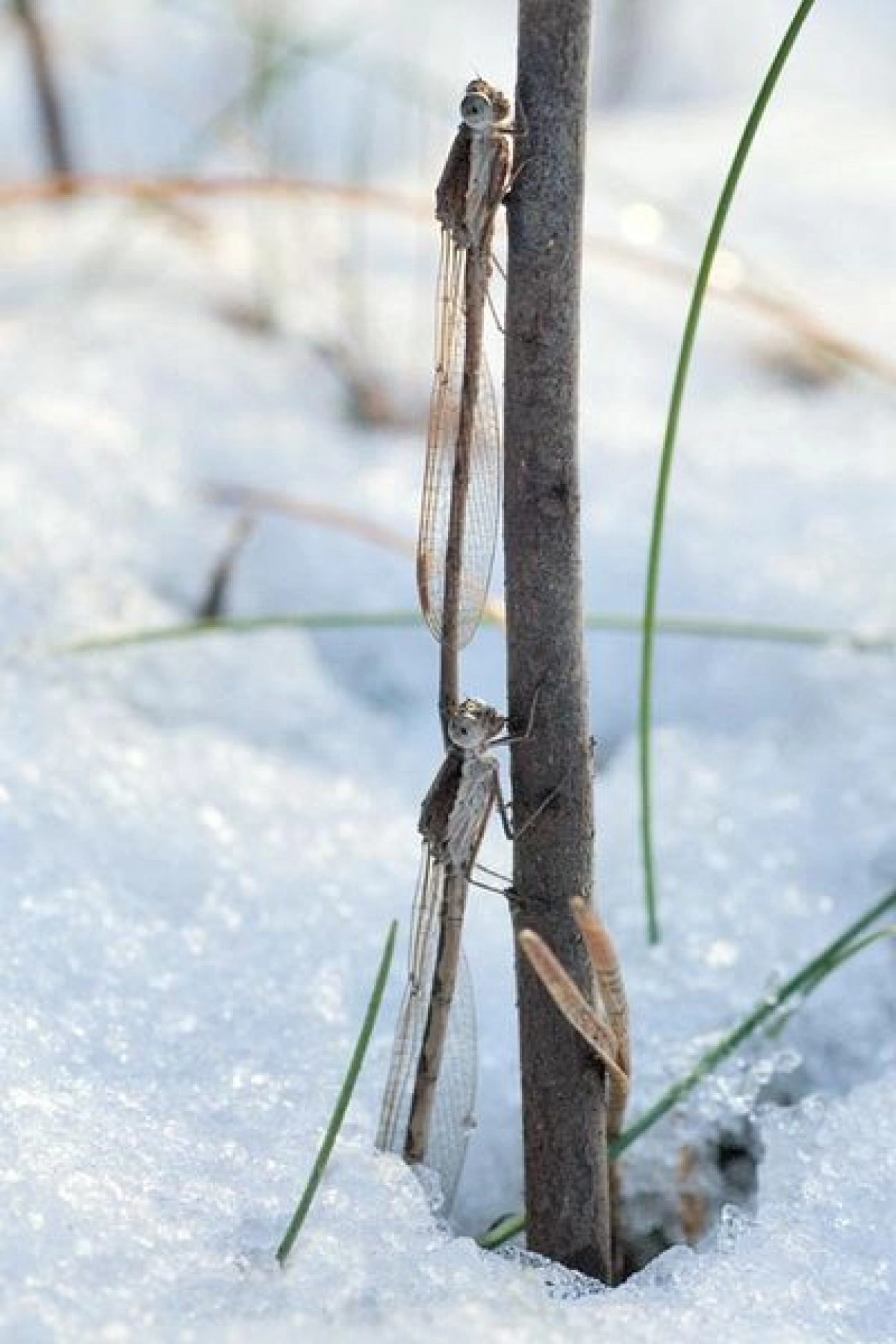 Gelijkende soorten: Noordse winterjuffer en vrouwtjes watersnuffel (bruine vorm). Meer over gelijkende soorten: De noordse winterjuffer lijk sterk op de bruine winterjuffer. De donkere strepen op de borststukrug van de noordse winterjuffer zijn echter niet recht, maar hebben een duidelijke uitstulping. Bovendien is de donkere streep op de zijkant van het borststuk smaller dan bij de bruine winterjuffer. De onderste achterlijfsaanhangselen van het mannetje zijn bij de noordse winterjuffer korter dan bij de bruine winterjuffer. De noordse winterjuffer is veel zeldzamer dan de bruine winterjuffer en komt alleen voor in de noordelijke helft van Nederland. De vrouwtjes van sommige andere juffersoorten kunnen globaal op winterjuffers lijken. Dit geldt vooral voor bruine varianten van vrouwtjes watersnuffel en lantaarntje. Wel beschouwd zien deze soorten er echter op veel punten anders uit.