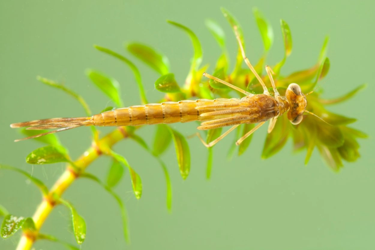 Lengte: 20 - 25 mm. waarvan de achterlijfaanhangsels, procten, 6 - 8 mm. De procten hebben een afgeronde uiteinde en vaak bandering. Ze hebben een niet-gesteeld vrij slank vangmasker, prementum.