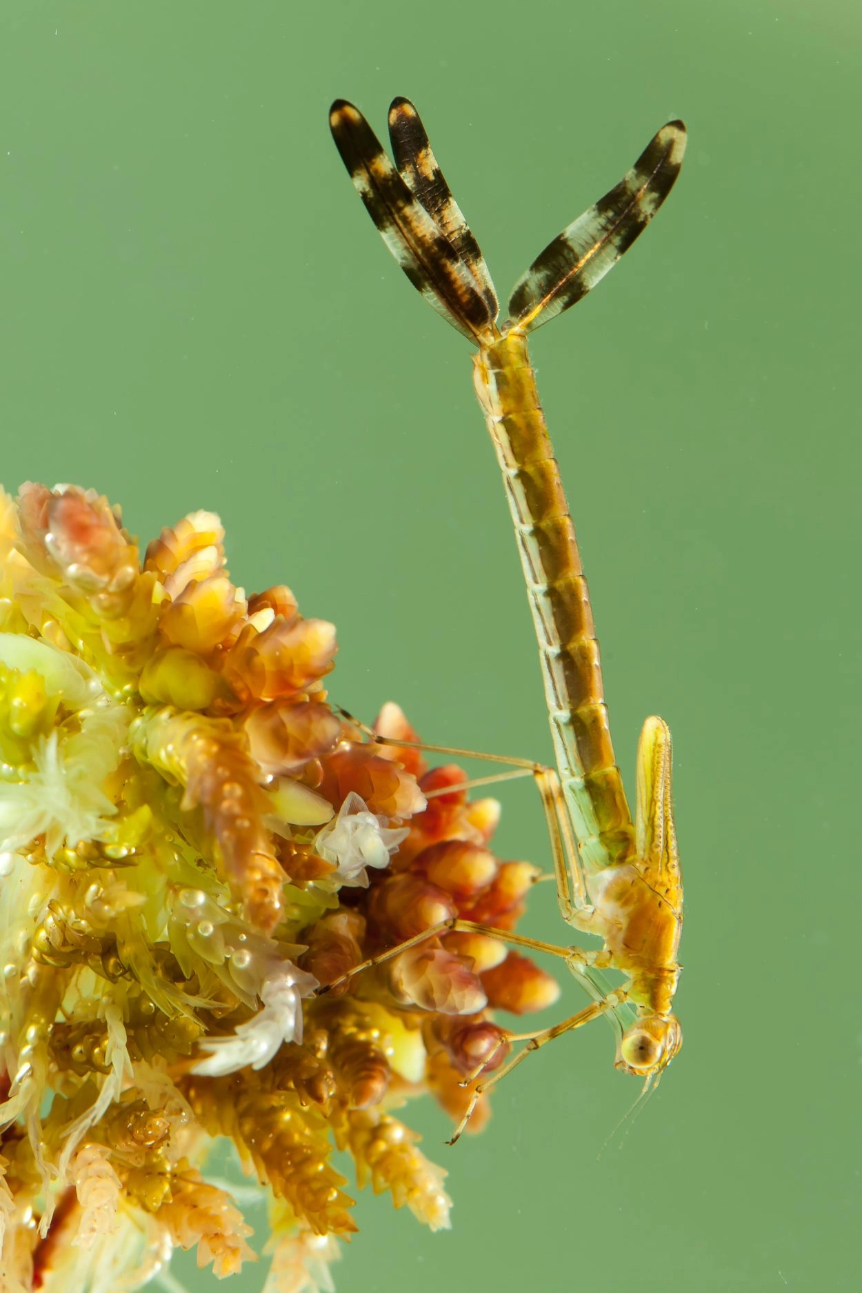 De overwintering gebeurt als ei. De eieren komen in het vroege voorjaar uit, waarna de larvale fase binnen twee maanden kan worden afgerond. De larven sluipen uit van half mei tot eind augustus. Larvenhuidjes zijn variabel van kleur. De larvenhuidjes zijn te vinden op waterplanten in de oeverzone, maximaal enkele decimeters hoog.