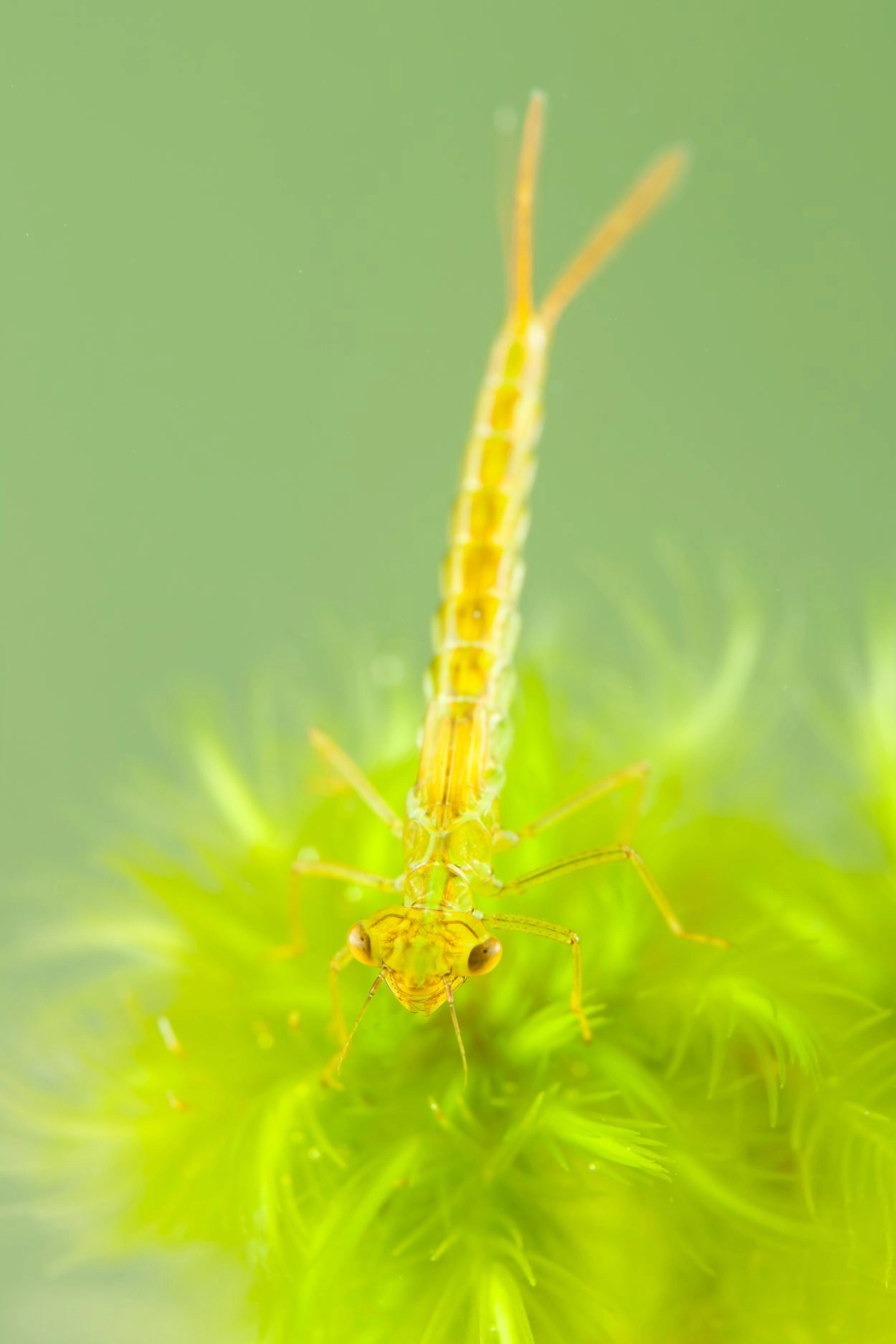 Lengte: 19 - 25 mm. waarvan de achterlijfaanhangsels, procten, 5 - 8 mm. Een vrij kleine larve met een relatief lang en een vrij breed vangmasker, prementum.De procten hebben een afgeronde uiteinde en geen bandering. De randen van het achterste (distale) deel van de procten zijn verdikt. De beadering van het achterste en voorste deel van de procten zijn gelijk.