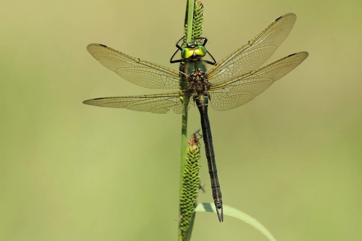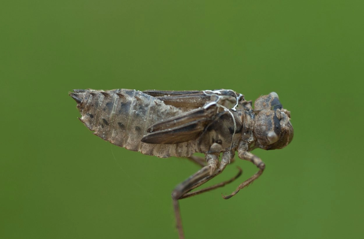 De larven overwinteren twee of drie keer, alvorens uit te sluipen. Uitsluipen gebeurt van begin mei tot eind juli. Larvenhuidjes zijn te vinden tot ongeveer een meter hoogte in de oevervegetatie. Incidenteel kunnen ze ook verder van het water gevonden worden en ook regelmatig onder bruggen.