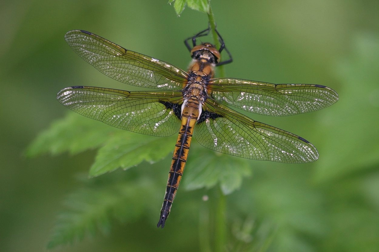 De larven overwinteren twee of drie keer. Uitsluipen vindt in Centraal-Europa vrijwel uitsluitend plaats in mei. De larvenhuidjes zijn meestal in de oevervegetatie te vinden, varierend van enkele decimeters tot een meter hoogte, vaak aan de onderzijde van bladeren. Maar net als bij de smaragdlibel zijn sommige goede wandelaars en klimmers en kunnen soms hoog in bomen of tientallen meters van de waterkant gevonden worden.