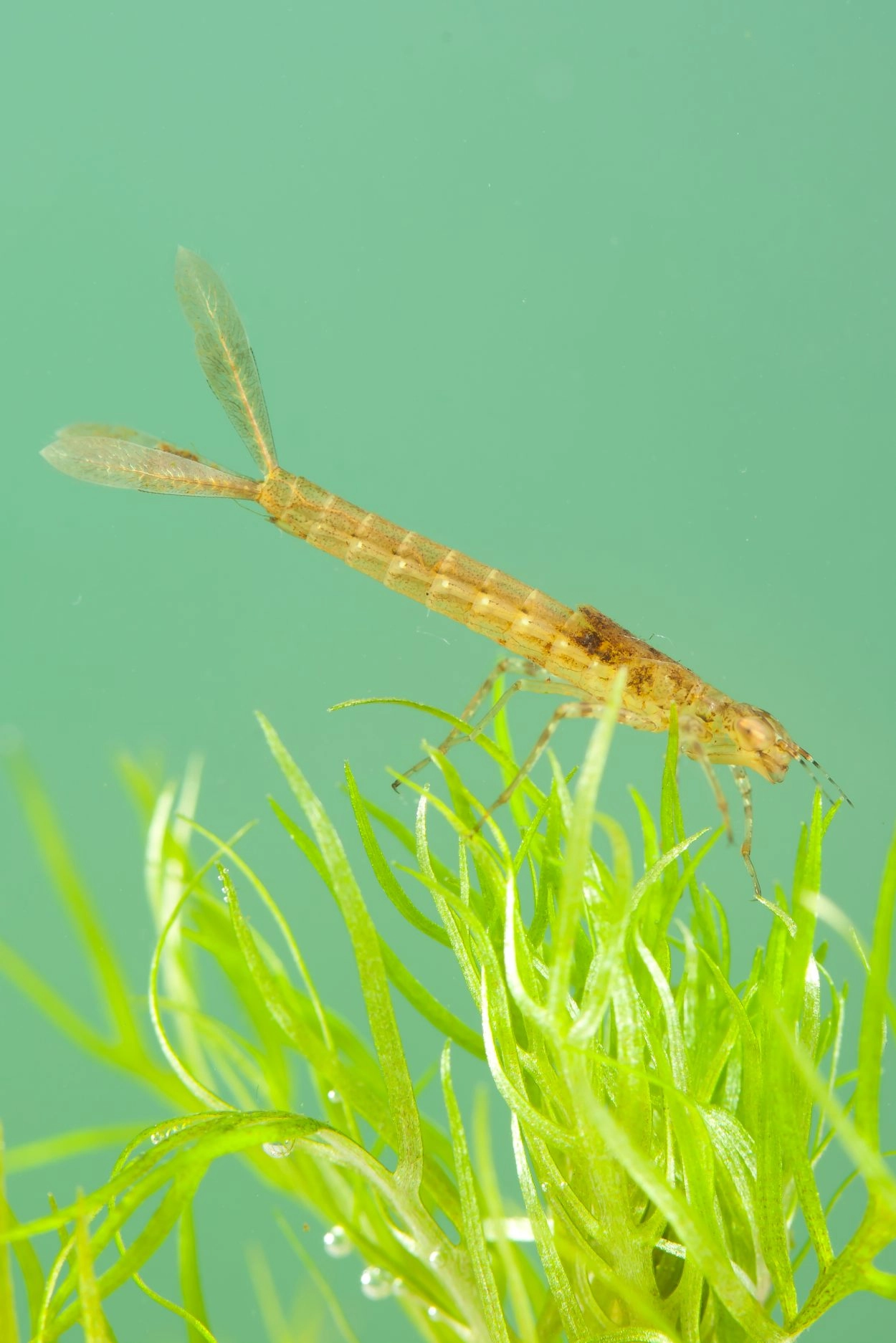 Eind april tot begin september, hoogste dichtheden in eerste helft van juni. Kan met name in laagveenmoerassen massaal voorkomen. Verse imago’s houden zich op in kruidenvegetaties en riet. Eiafzet gebeurt in tandem en vaak groepsgewijs. Meestal worden drijvende waterplanten gebruikt.