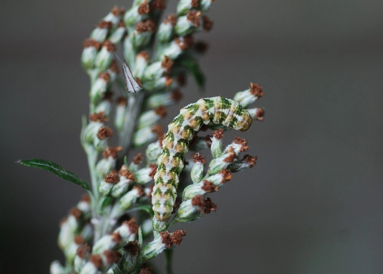 Rups: juli-september. De rups foerageert op de bloemen en de zaden van de waardplant en rust overdag onbeschut op de bloemen. De soort overwintert als pop in een stevige cocon van spinsel en aarde in de strooisellaag of in de grond (soms meerdere jaren). Het afzetten van de eieren vindt plaats op solitair groeiende waardplanten.