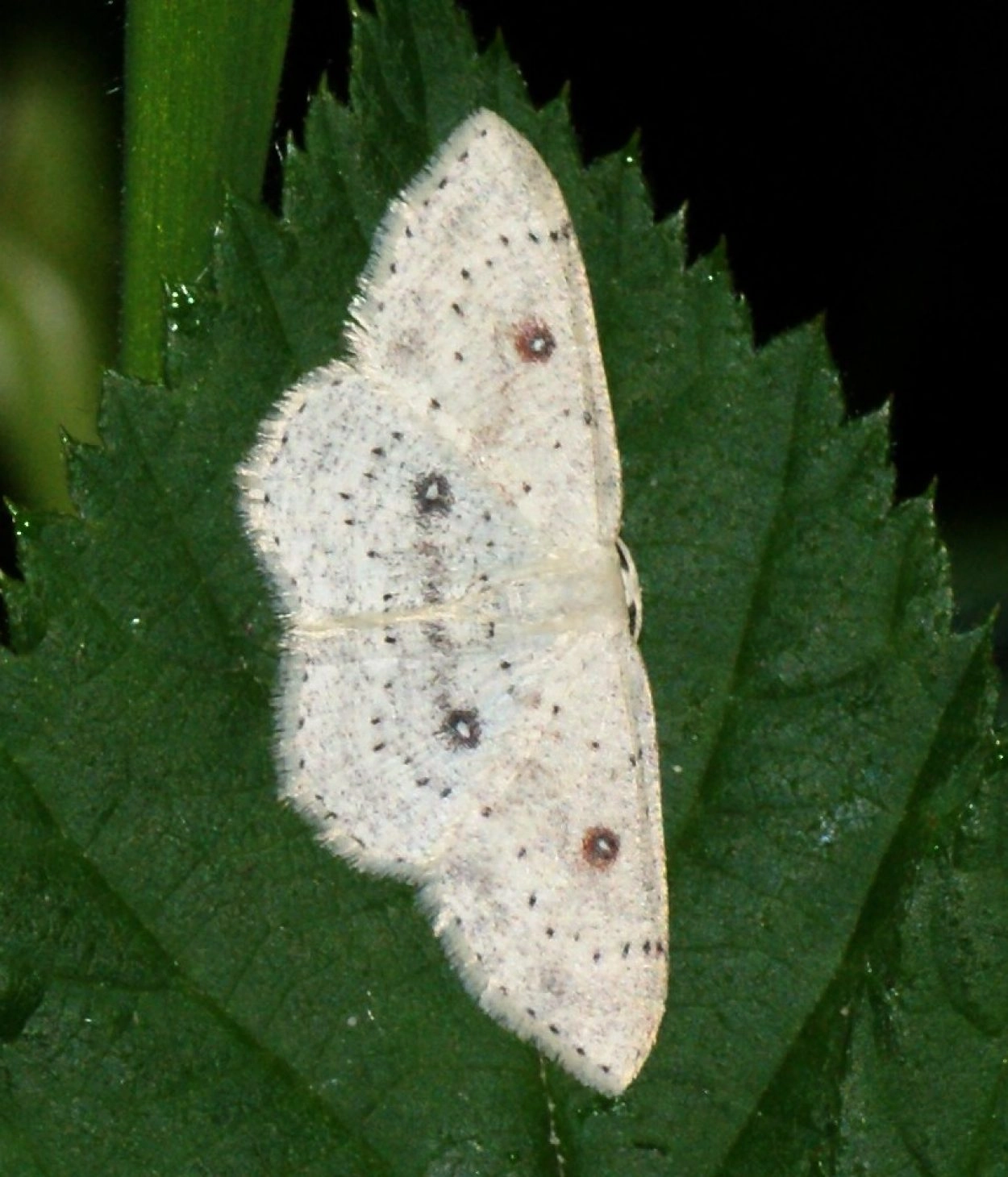 Voorvleugellengte: 12-14 mm. De effen grijs- of witachtige grondkleur van de vleugels is kenmerkend voor de meeste exemplaren van deze soort. Sommige vlinders hebben bovendien een grijzige middenschaduw. Deze kan ook een rozerode kleur hebben, en een zweem van die kleur kan ook elders op de vleugel aanwezig zijn. Op de fijn grijs bespikkelde vleugels bevinden zich de voor de oogspanners (Cyclophora-soorten) kenmerkende oogjes. Vlinders van de tweede generatie zijn soms iets donkerder en grijzer.