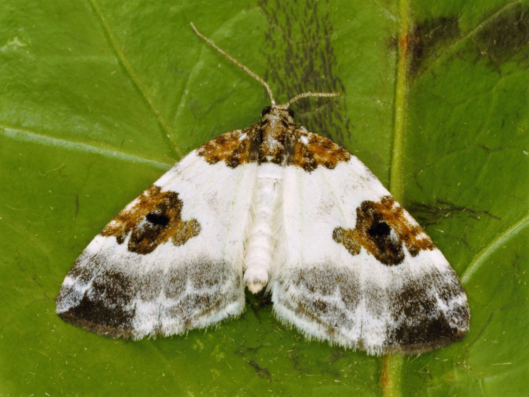 Voorvleugellengte: 12-15 mm. Deze spanner heeft een vrij smalle voorvleugel met een afgeronde vleugelpunt. Kenmerkend zijn de blauwgrijze achterrand en vleugelzoom op de krijtwitte ondergrond; de blauwgrijzeachterrand wordt soms onderbroken door een witte strook. De bruine middenband op de voorvleugel is gereduceerd tot een grote vlek aan de voorrand en hoogstens enkele kleine vlekjes langs de binnenrand.