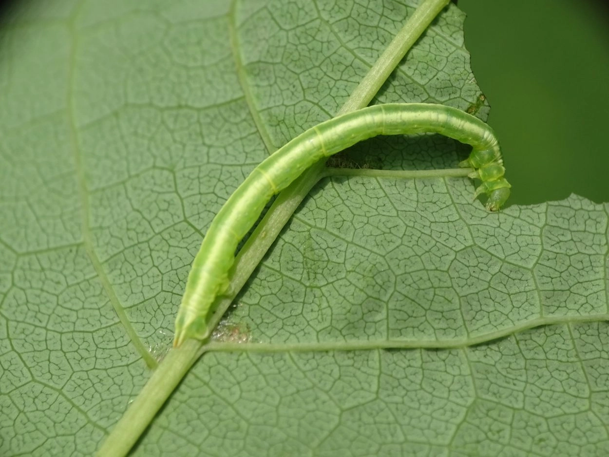 Gele agaatspanner (Gandaritis pyraliata), lichte blokspanner (Lobophora halterata) en kleine blokspanner (Pterapherapteryx sexalata). N.B.: vergelijk behalve de uiterlijke kenmerken ook de tijd van het jaar waarin de rupsen voorkomen, het habitat en de waardplant(en).