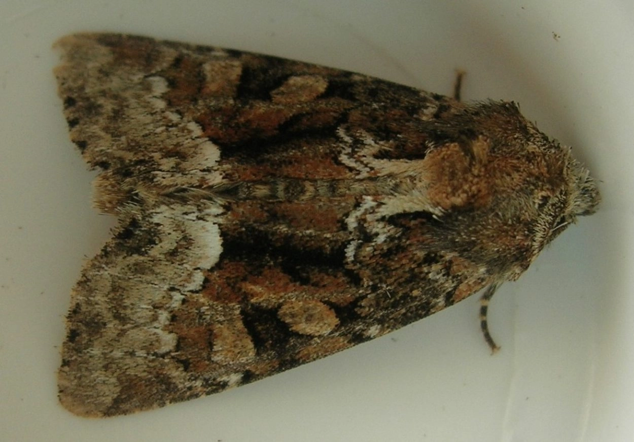 Half mei-half augustus in één generatie. De vlinders komen op licht en op smeer.