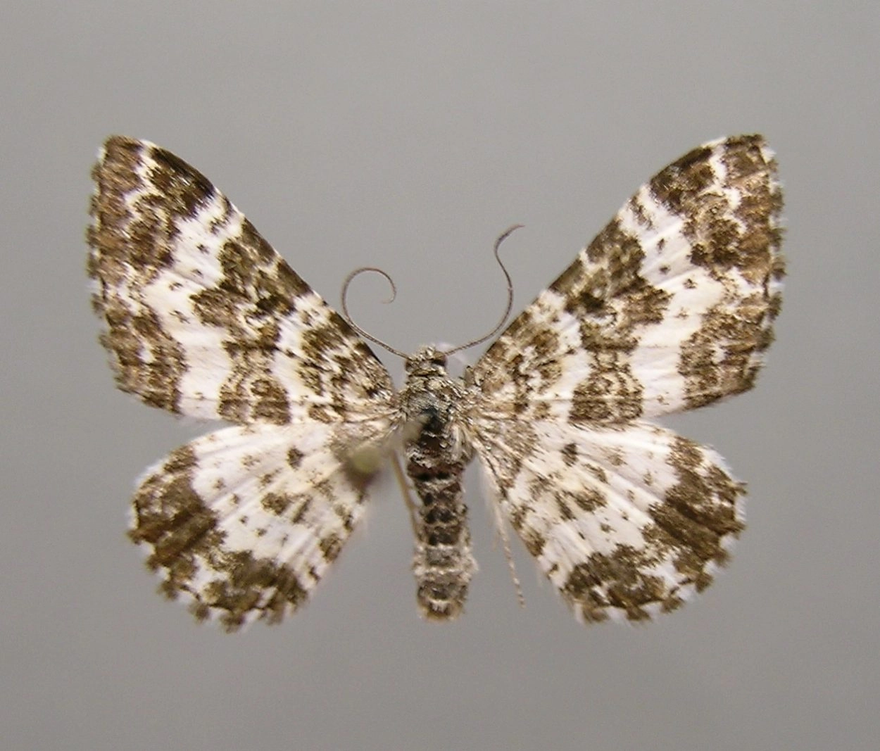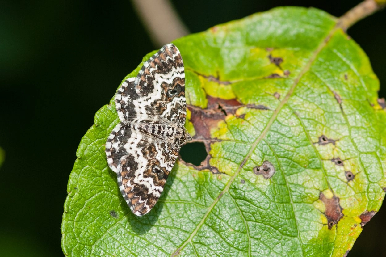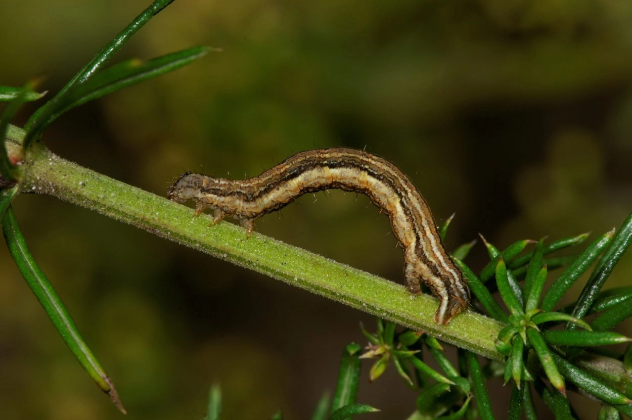 Walstrobandspanner (Epirrhoe galiata).N.B.: vergelijk behalve de uiterlijke kenmerken ook de tijd van het jaar waarin de rupsen voorkomen, het habitat en de waardplant(en).
