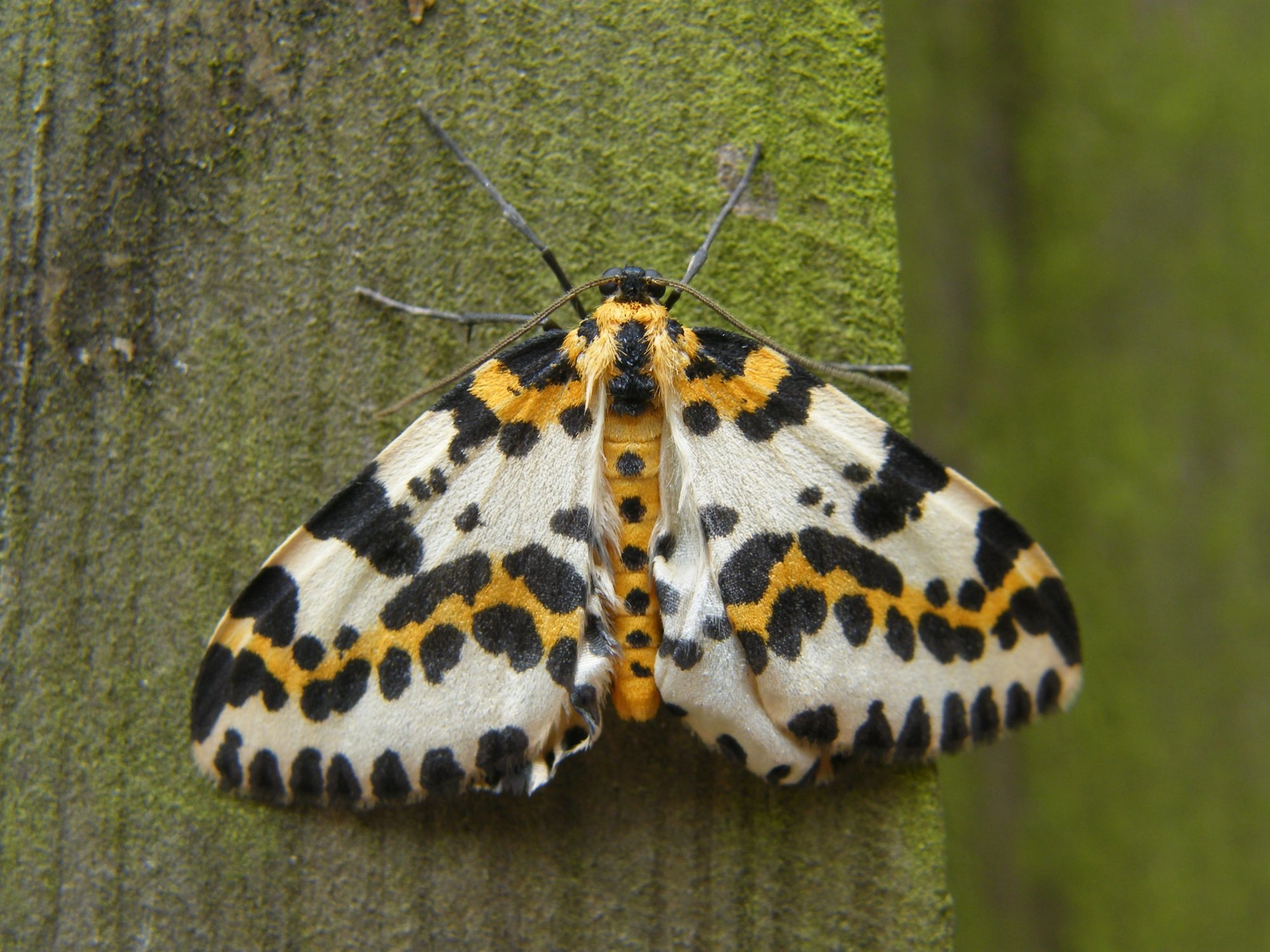 Half mei-eind augustus in één generatie. De vlinders komen op licht. Ze worden soms rustend waargenomen op bladeren van onder andere braam en houden zich dood als ze worden gevangen of aangeraakt. Zowel de vlinders als de rupsen worden vanwege de opvallende signaalkleuren niet door vogels gegeten.