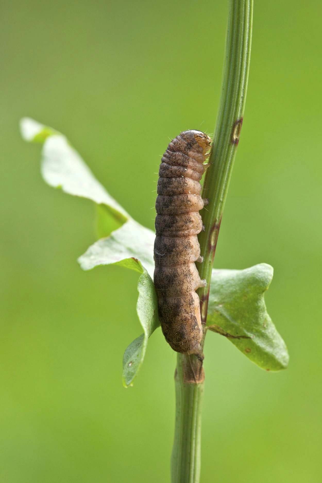 Kooluil (Mamestra brassicae).N.B.: vergelijk behalve de uiterlijke kenmerken ook de tijd van het jaar waarin de rupsen voorkomen, het habitat en de waardplant(en).