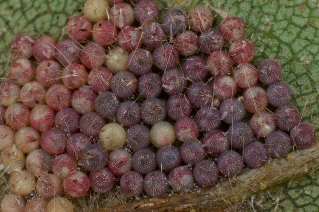 Tot 45 mm; vrij dik; lichaam varieert in kleur van mat bruin tot grijs of olijfgroen; over de rug een rij donkerbruine ruit- en wigvormige vlekken; onder de witachtige spiracula is de lichaamskleur bleek grijsachtig bruin; kop bruin met twee zwarte strepen.