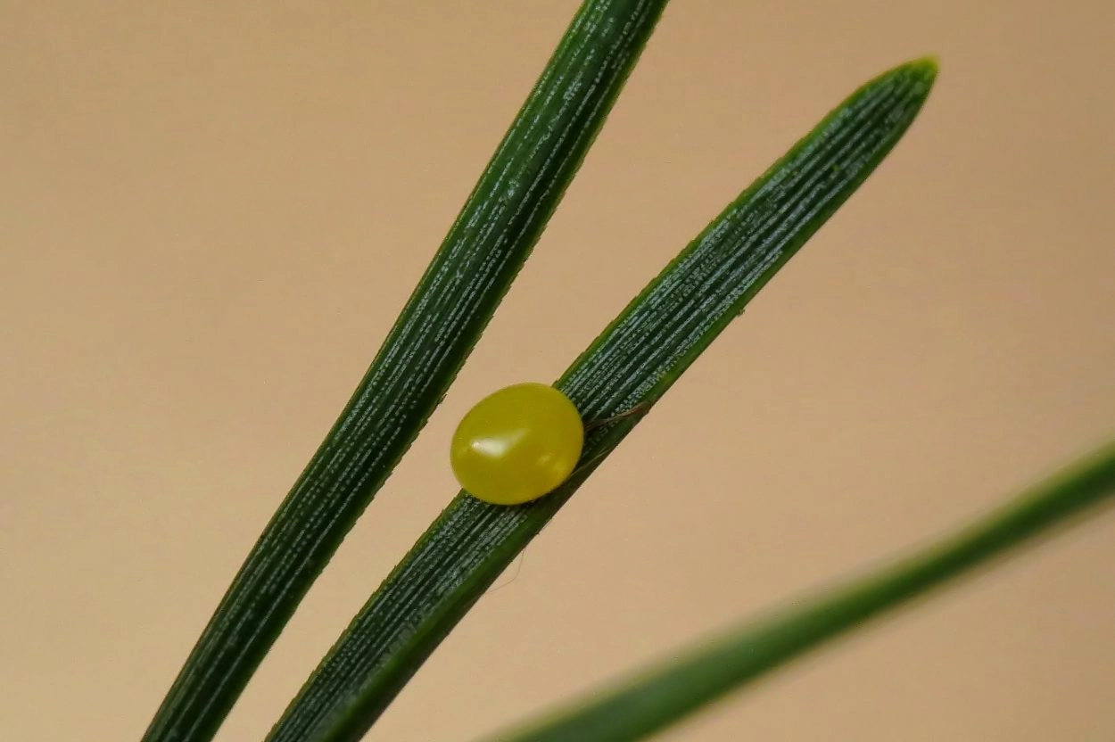 Rups: juli-oktober. De rups kan zowel op kleine als op grote bomen worden aangetroffen en heeft meestal een voorkeur voor oudere naalden. De soort overwintert als pop in de strooisellaag of in de grond.