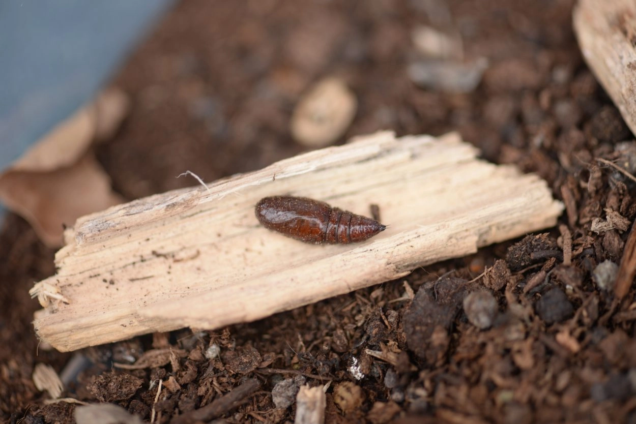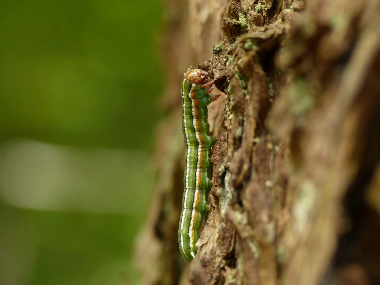 Rups: mei-juli. De rupsen leven eerst in groepen, later solitair. De soort overwintert als pop in een losse cocon in de strooisellaag of in een bastspleet. De eieren worden in rijen op volgroeide naalden afgezet.