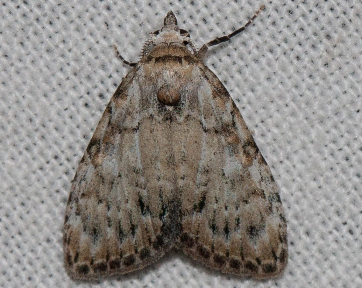 Voorvleugellengte: 9-11 mm. Dit visstaartje heeft een grijsachtige voorvleugel met enkele tamelijk onregelmatige zwarte dwarslijnen. De buitenste dwarslijn is sterk getand, de binnenste dwarslijn is S-vormig. Er is geen duidelijke middenband. In de buitenste zone liggen kleine maar duidelijke zwarte streepjes, die soms een soort dwarsband vormen. De achtervleugel is bruin en heeft een duidelijke middenstip.