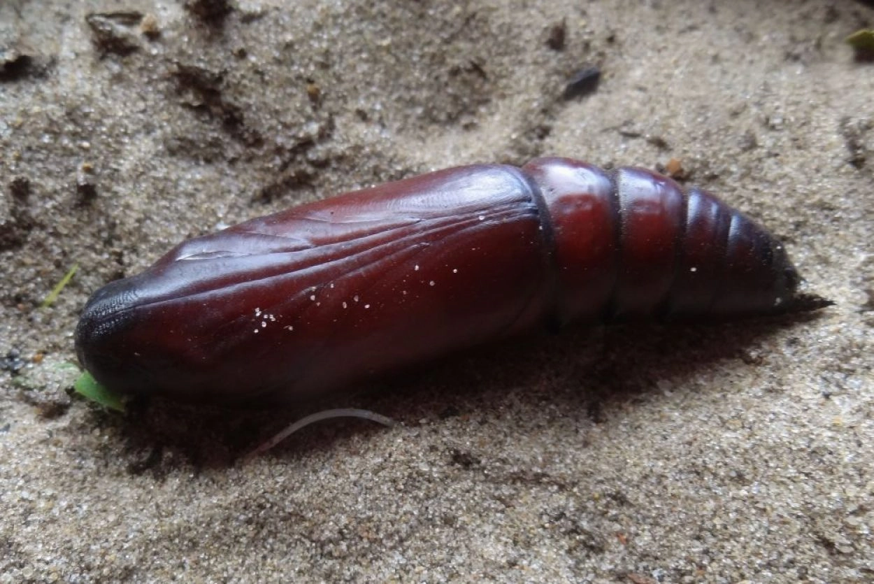 Rups: augustus-oktober. De rups verpopt zich in de grond in een losse cocon en overwintert, in sommige gevallen zelfs tweemaal, op een diepte van soms meer dan 30 cm. Een deel van de poppen komt aan het eind van de zomer of in de vroege herfst nog uit. In Nederland is deze soort niet in staat de winter te overleven.