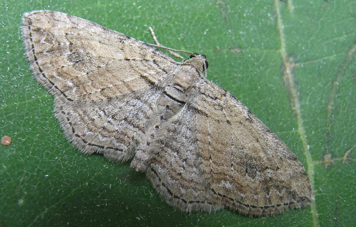 Voorvleugellengte: 14-18 mm. Een middelgrote, bruine spanner. Opvallend is dat de donkere binnenste dwarslijn in rusthouding samenvalt met de fijne zwarte lijn vooraan op het achterlijf, waardoor een voor deze soort kenmerkende doorlopende streep ontstaat. Op de bruinachtige voorvleugel bevinden zich meerdere vage gebroken dwarslijnen en bruine vlekjes en soms een kleine middenstip dichtbij de voorrand. Zowel de kleur als de tekening zijn weinig variabel.