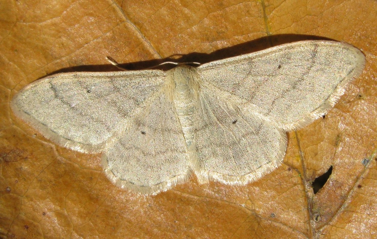 Grijze stipspanner (Idaea aversata).N.B.: vergelijk behalve de uiterlijke kenmerken ook de tijd van het jaar waarin de rupsen voorkomen, het habitat en de waardplant(en).
