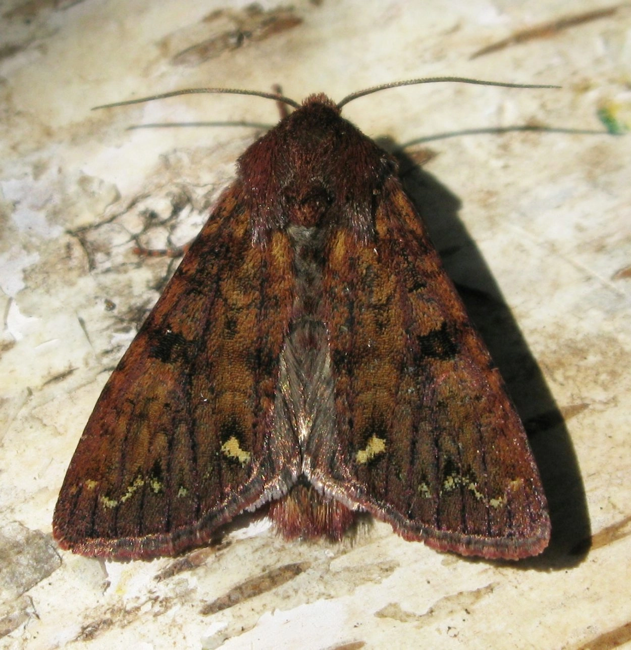 Bij de groente-uil (Lacanobia oleracea) loopt de golflijn rechter met in het midden een opvallende W.
