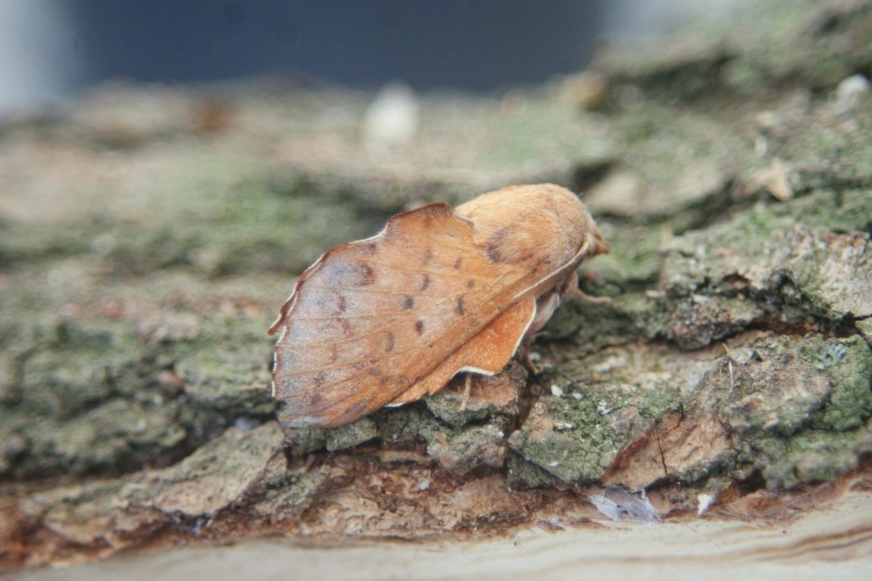 Voorvleugellengte: ♂ 15-18 mm, ♀ 18-20 mm. Deze kleine spinner heeft door de karakteristieke rusthouding en vleugelvorm veel weg van een dood blad. De door de palpen gevormde ‘snuit’ is relatief sterk naar beneden gericht. Zowel de voor- als de achtervleugel is overwegend oranjebruin van kleur. Met name de vleugelzoom is echter in meer of mindere mate vermengd met grijs en soms heeft ook de bovenkant van het borststuk een enigszins grijze tint. De centrale dwarslijnen en ook de golflijn bestaan uit losse zwarte vlekjes. Halverwege de centrale dwarslijnen ligt een kleine langwerpige middenvlek. De vleugels, vooral de achtervleugels, hebben een gekartelde achterrand en een onduidelijke donkerbruin met wit geblokte franje. Niet in rusthouding zichtbaar maar voor determinatie eveneens van belang, zijn het op de binnenste helft van de achtervleugel gelegen lichte veld en de afgeronde overgang van de gekartelde achterrand naar de binnenrand. De variatie is relatief gering. Soms komen exemplaren met een meer donkerbruine grondkleur voor. Ook varieert de hoeveelheid grijs.