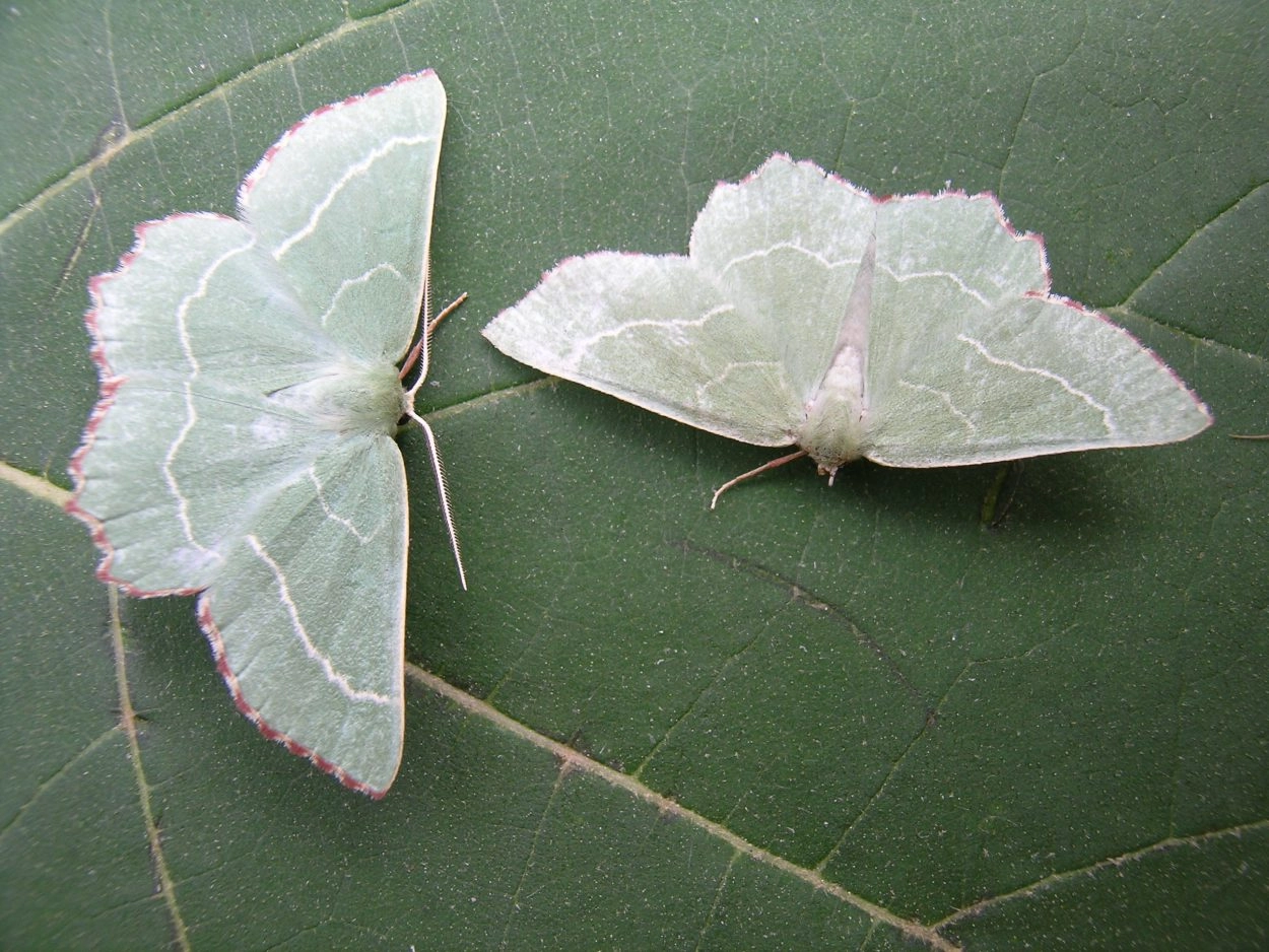 Smaragdgroene zomervlinder (Chlorissa viridata), melkwitte zomervlinder (Jodis lactearia), tere zomervlinder (Hemistola chrysoprasaria), spaansgroene zomervlinder (Jodis putata) en kleine zomervlinder (Hemithea aestivaria). N.B.: vergelijk behalve de uiterlijke kenmerken ook de tijd van het jaar waarin de rupsen voorkomen, het habitat en de waardplant(en).