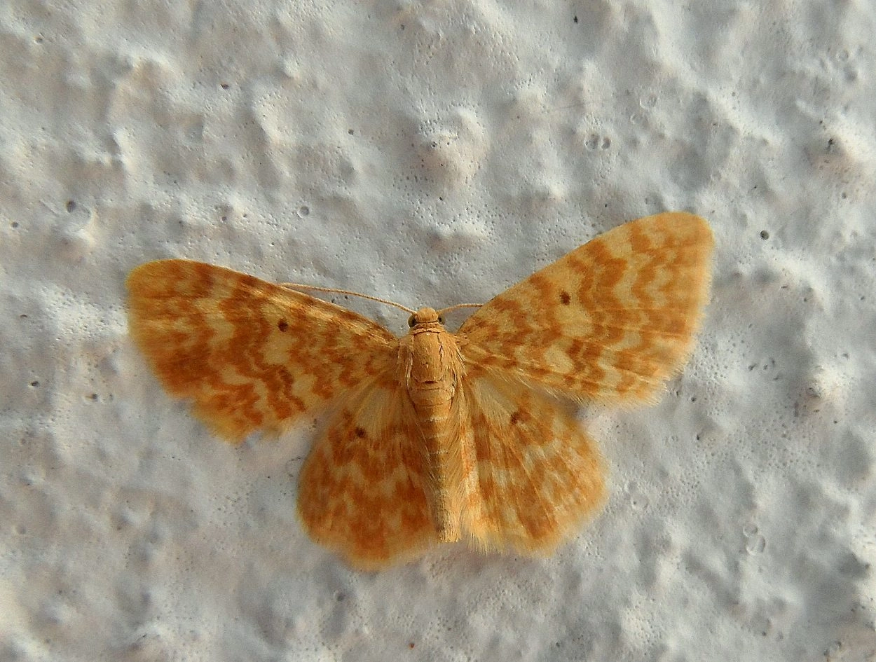 Voorvleugellengte: 11-13 mm. Een opvallend spannertje met een lichtgele grondkleur, onregelmatige geelachtig bruine dwarslijnen en een kleine maar duidelijke middenstip op de voor- en achtervleugel. Op de voorvleugel zijn de buitenste dwarslijn, de golflijn en de achterrand in het midden vaak met elkaar verbonden door een lichtbruin balkje.