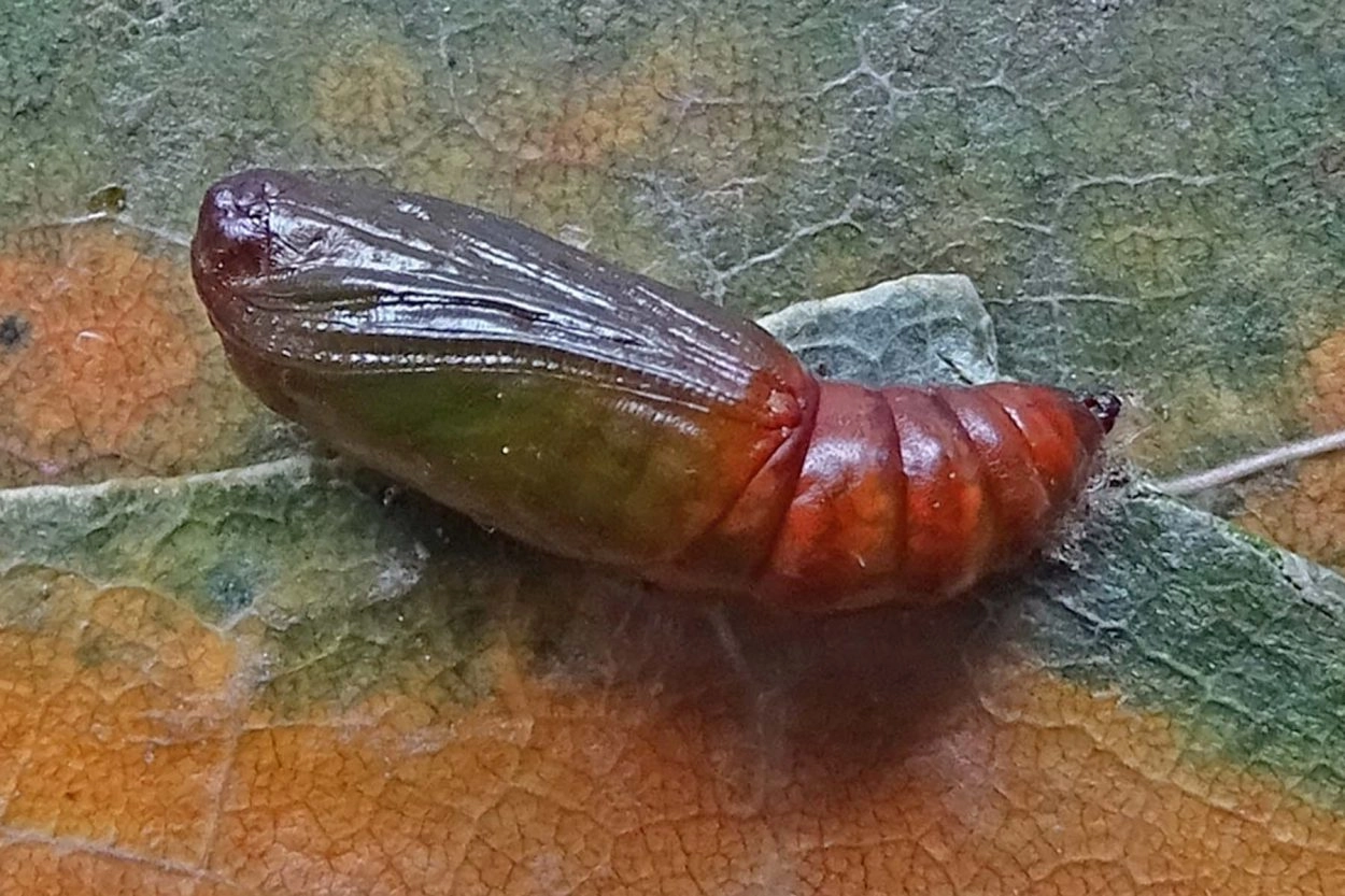 Zie de rode dennenspanner (Hylaea fasciaria).