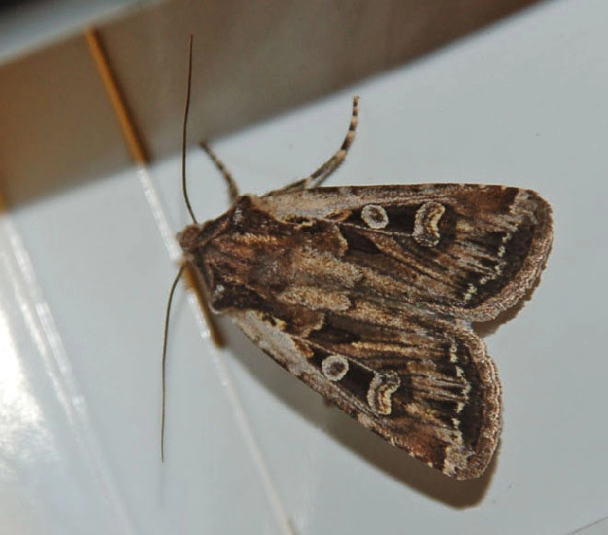 In het buitenland: juli-augustus in één generatie. De vlinders komen op licht.