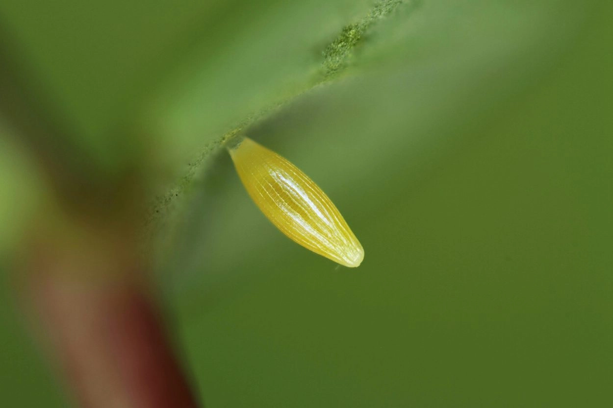 De vrouwtjes zetten de eitjes afzonderlijk af op de bladeren of stengels. Ei-afzetting vindt vooral ‘s middags plaats en bij voorkeur op jonge of lage planten die groeien op kale grond.