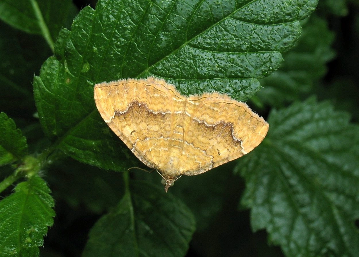 Voorvleugellengte: 13-16 mm. Enigszins variabel van kleur, maar altijd goed herkenbaar door de unieke combinatie van kleur en tekening. Bij de meeste exemplaren hebben zowel de voor- als de achtervleugel een goudgele grondkleur. De talrijke fijne bruinachtige gegolfde dwarslijnen geven deze spanner een gestreept uiterlijk. Op de voorvleugel zijn de centrale dwarslijnen opvallend goed te onderscheiden door hun helderwitte kleur; de buitenste daarvan loopt door over de achtervleugel. De dwarslijn in het wortelveld en de golflijn zijn vaak ook wit, maar minder duidelijk te onderscheiden. Vooral bij het vrouwtje zijn vaak twee (donker)bruine dwarsbanden te zien die grenzen aan de witte centrale dwarslijnen.