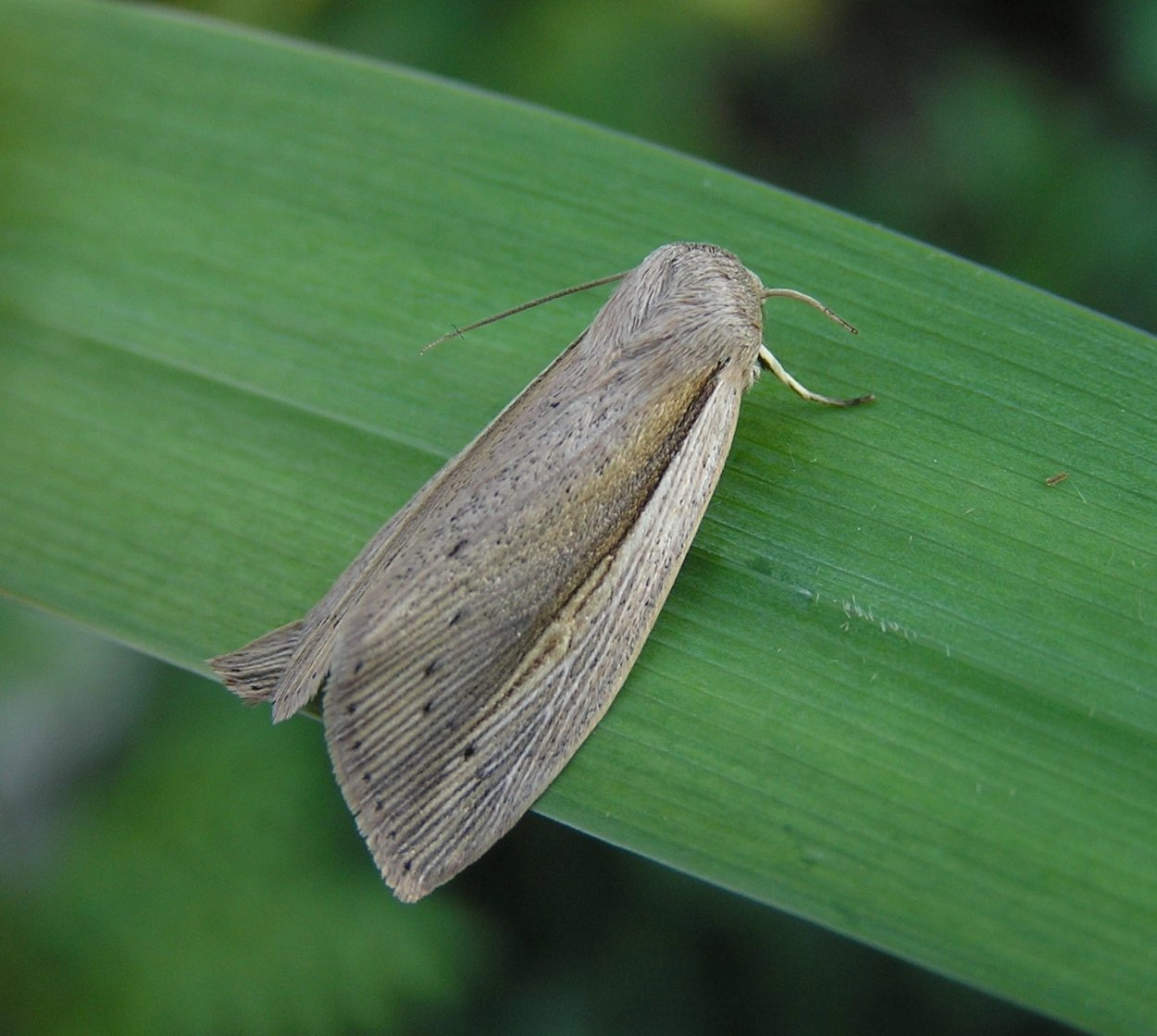 Gestreepte rietuil (Leucania obsoleta).N.B.: vergelijk behalve de uiterlijke kenmerken ook de tijd van het jaar waarin de rupsen voorkomen, het habitat en de waardplant(en).