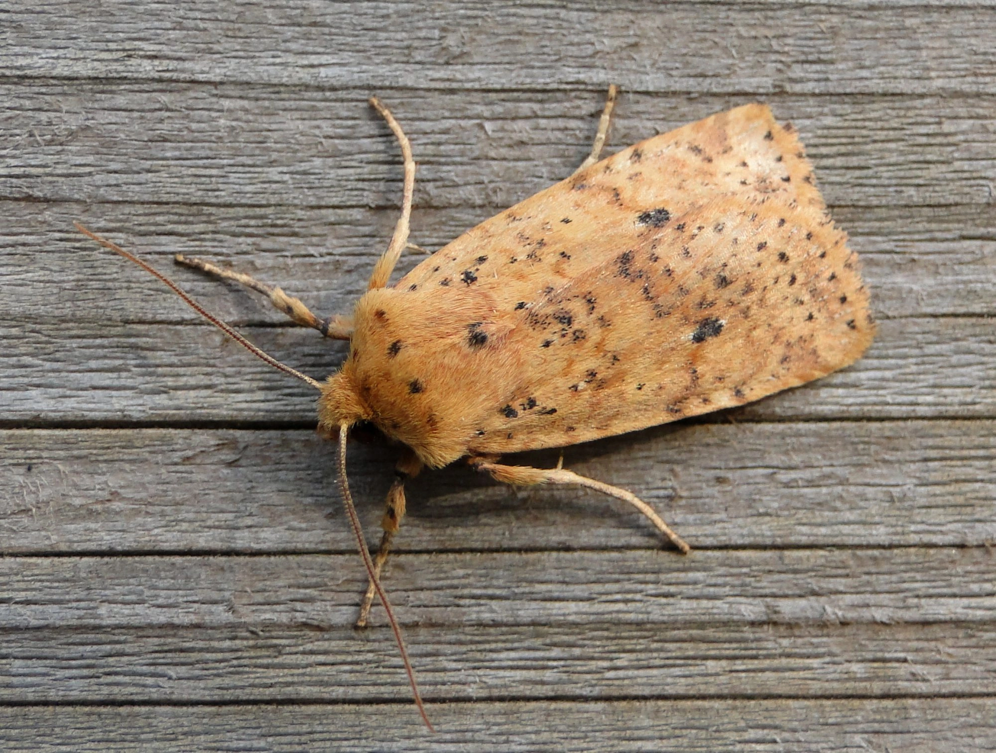 Voorvleugellengte: 15-17 mm. Door het bonte patroon van donkere vlekken en stippen op de bruinachtig gele of oranjerode voorvleugel is deze uil goed te onderscheiden van andere Conistra-soorten. De achtervleugel is bruinachtig grijs. De vleugels worden in een vlak boven het achterlijf gehouden, vaak ver over elkaar geschoven.