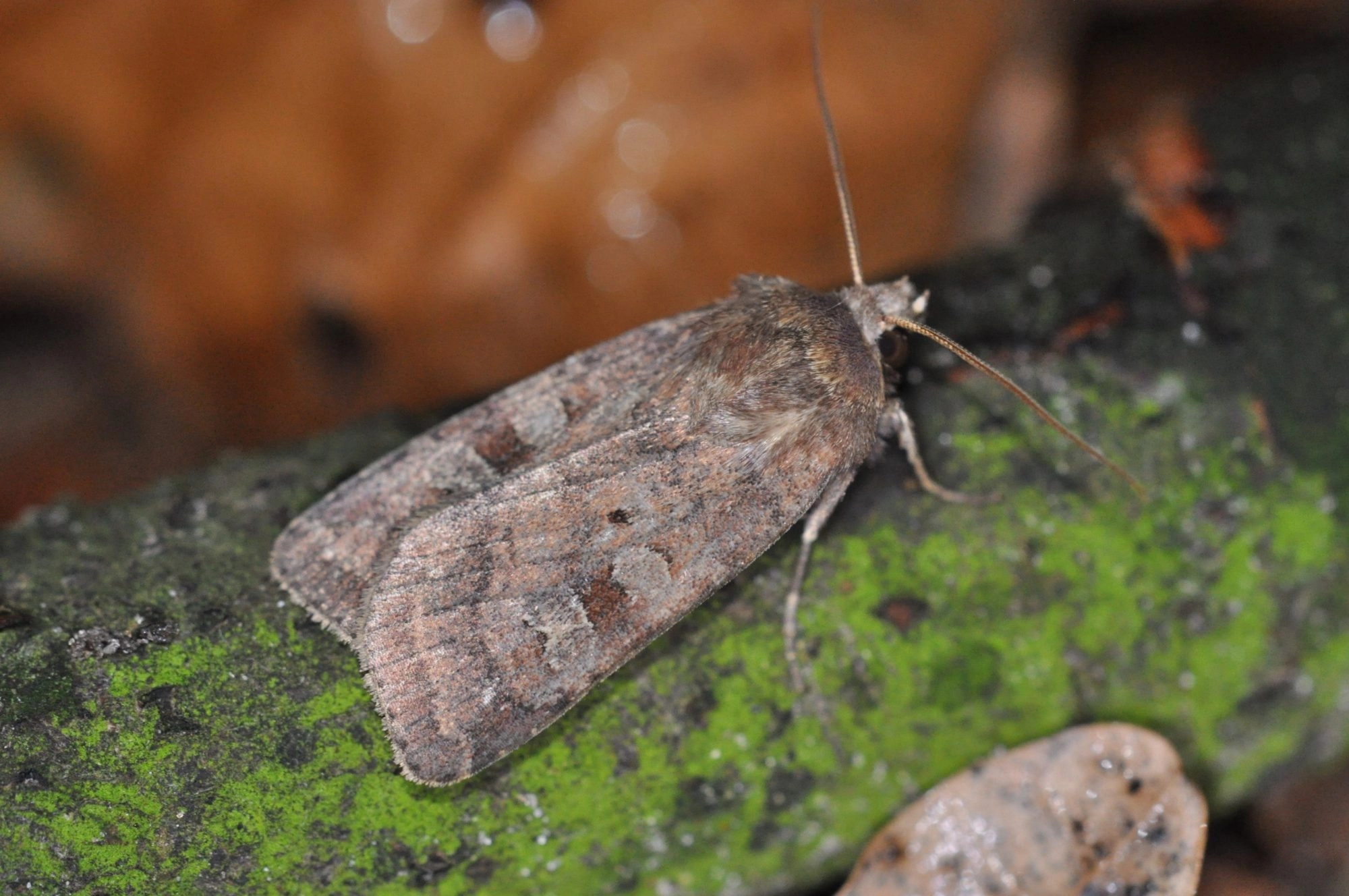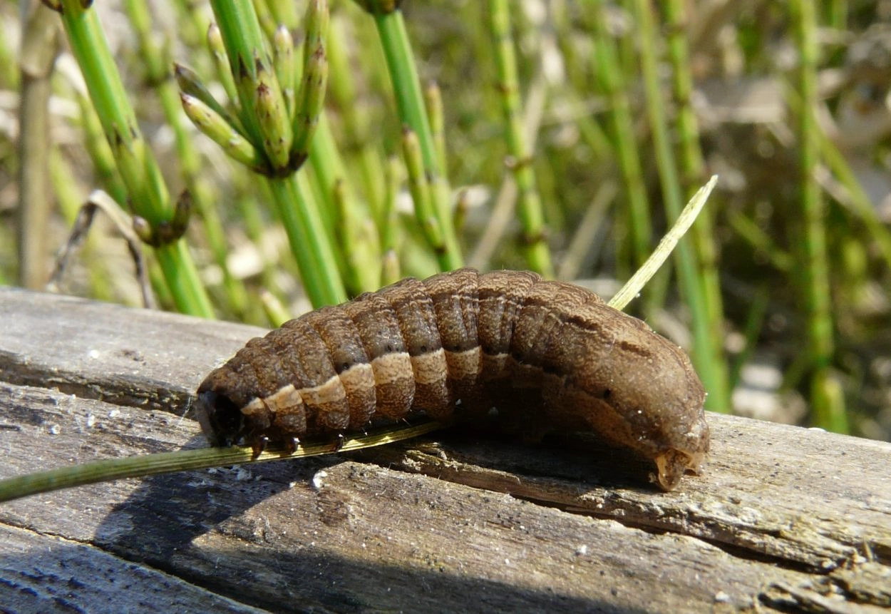 Haarbos (Ochropleura plecta).N.B.: vergelijk behalve de uiterlijke kenmerken ook de tijd van het jaar waarin de rupsen voorkomen, het habitat en de waardplant(en).