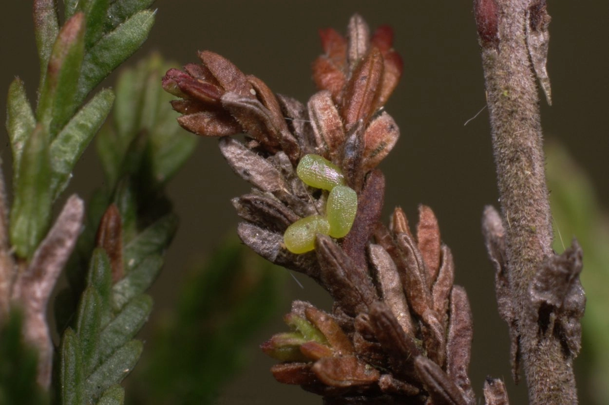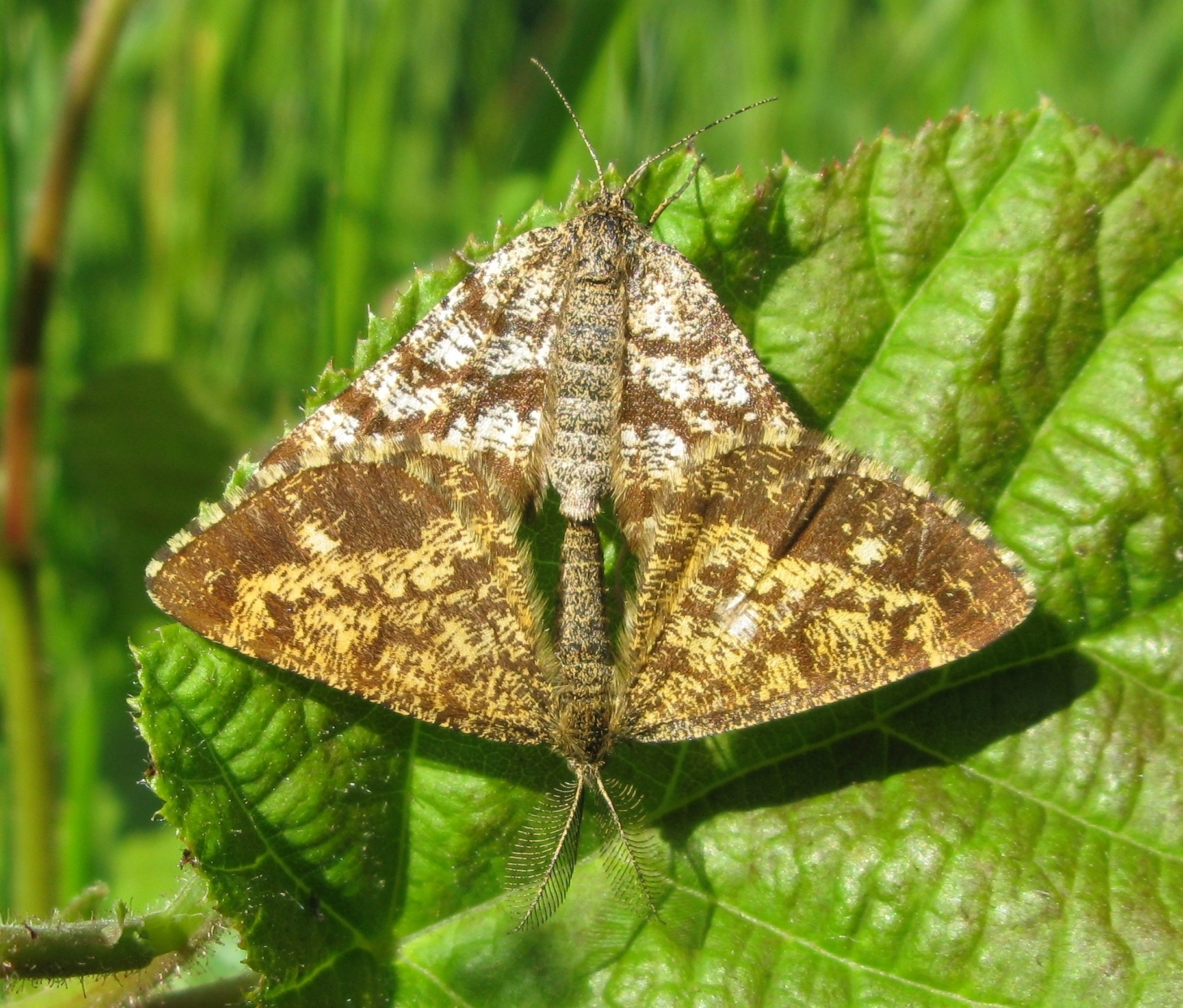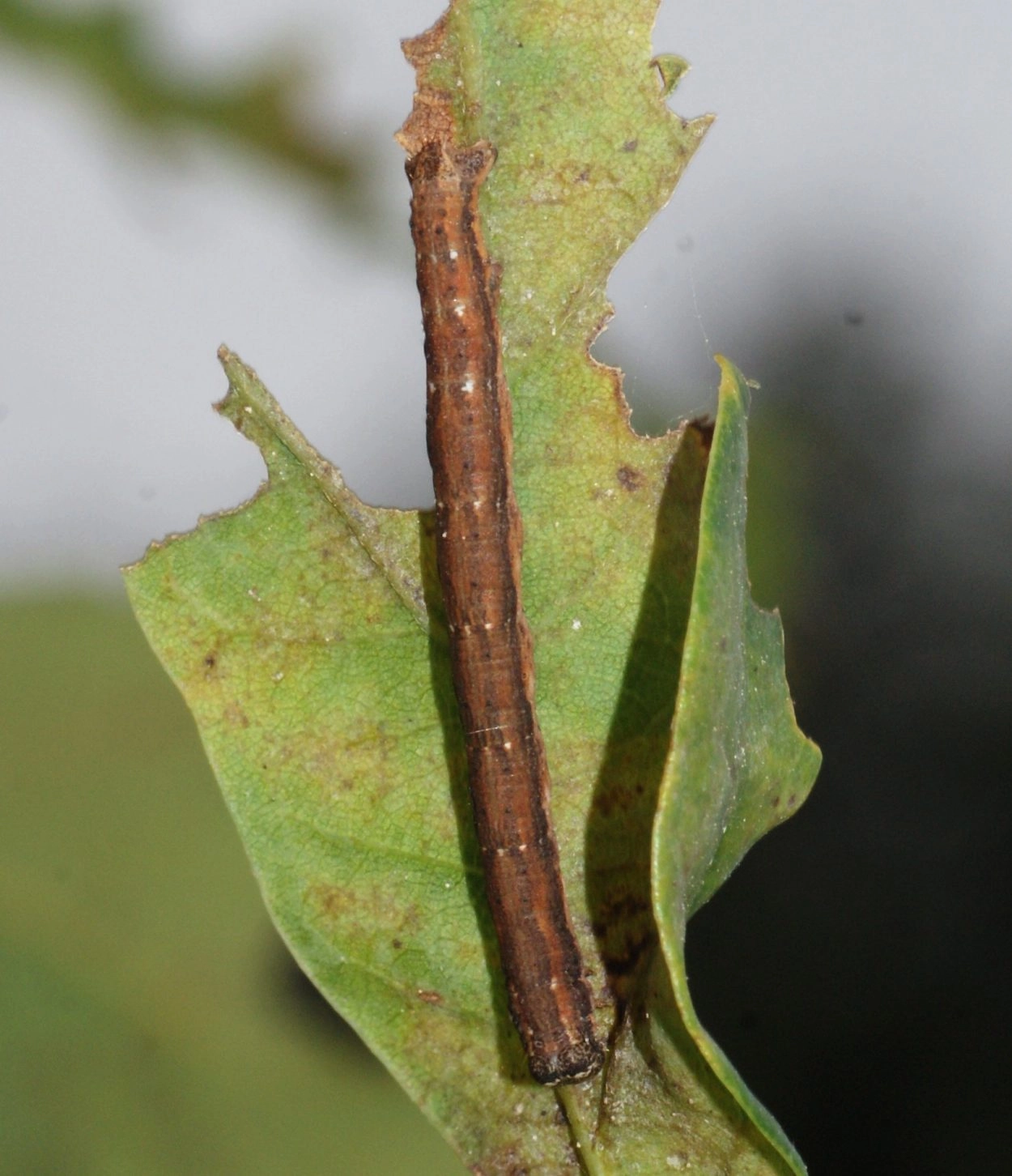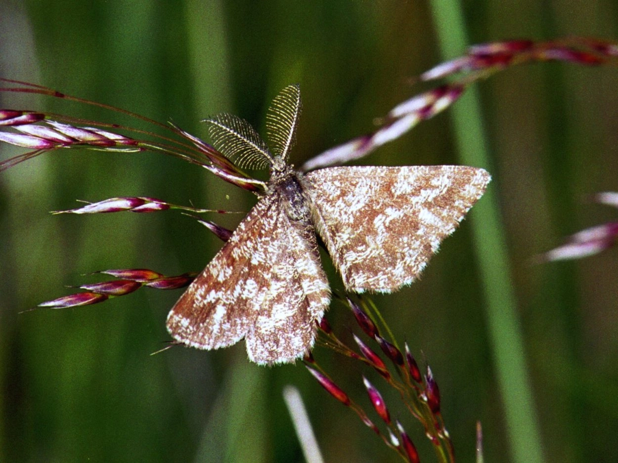 Gevlekte heispanner (Dyscia fagaria).N.B.: vergelijk behalve de uiterlijke kenmerken ook de tijd van het jaar waarin de rupsen voorkomen, het habitat en de waardplant(en).