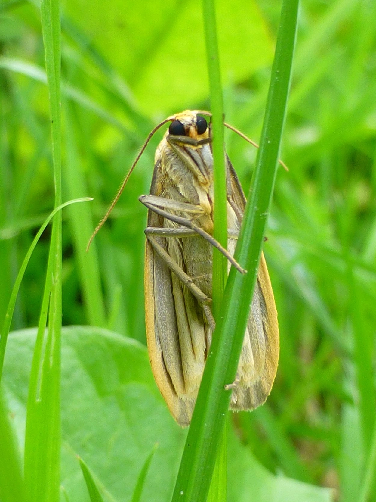 Klein kokerbeertje (Eilema pygmaeola) en streepkokerbeertje (Eilema complana). N.B.: vergelijk behalve de uiterlijke kenmerken ook de tijd van het jaar waarin de rupsen voorkomen, het habitat en de waardplant(en).