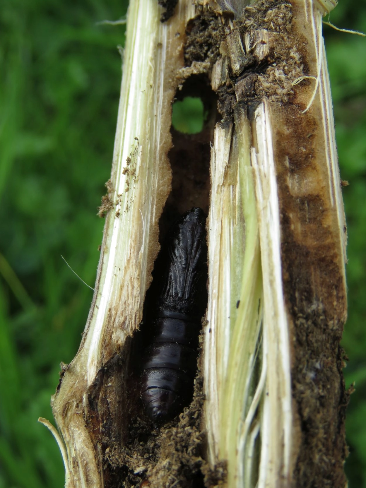 Rups: april-augustus. De rups leeft in de onderste delen van de stengel van de waardplant, waar ook de verpopping plaatsvindt. De soort overwintert als ei.