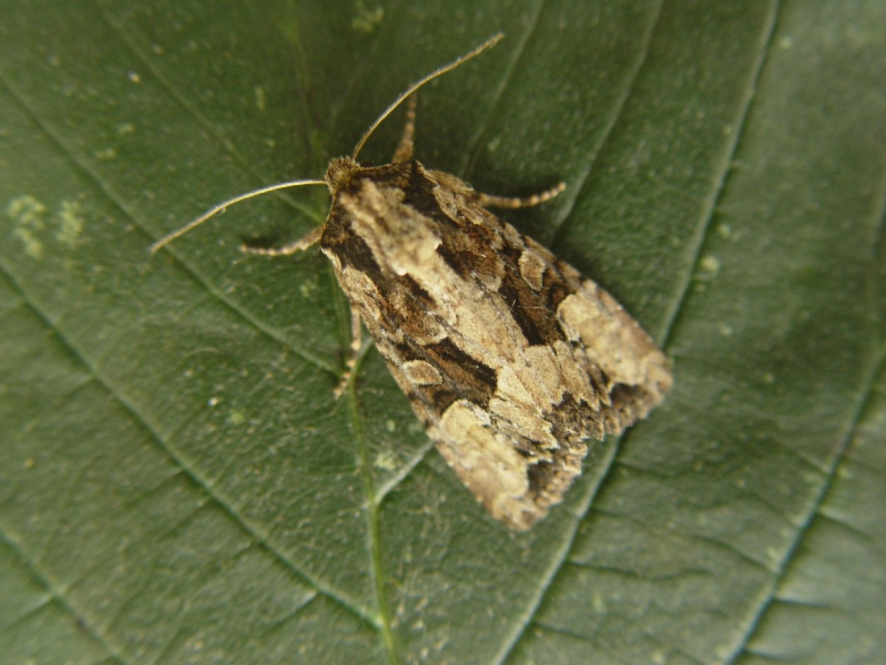 Voorvleugellengte: 17-19 mm. Een zeer variabele soort met verschillende kleurvormen. De voorrand van de tamelijk brede voorvleugel is vooral bij de vleugelpunt gebogen. De lichte golflijn is onregelmatig getand en heeft in het midden een duidelijke W. In de meeste gevallen is het middenveld donkerder gekleurd dan het wortelveld en het zoomveld; de ringvlek en de niervlek zijn lichter dan de ondergrond en gedeeltelijk donker omrand. De kleur van de voorvleugel varieert van bruinachtig grijs met een warmbruine marmering en een onopvallende of juist een uitgesproken tekening tot grijsachtig bruin met een patroon van vrij grote opvallende zandkleurige vlekken. Bij contrastrijk getekende exemplaren is een zwarte balk zichtbaar tussen de centrale dwarslijnen en zijn in het wortelveld doorgaans twee zwarte strepen zichtbaar.