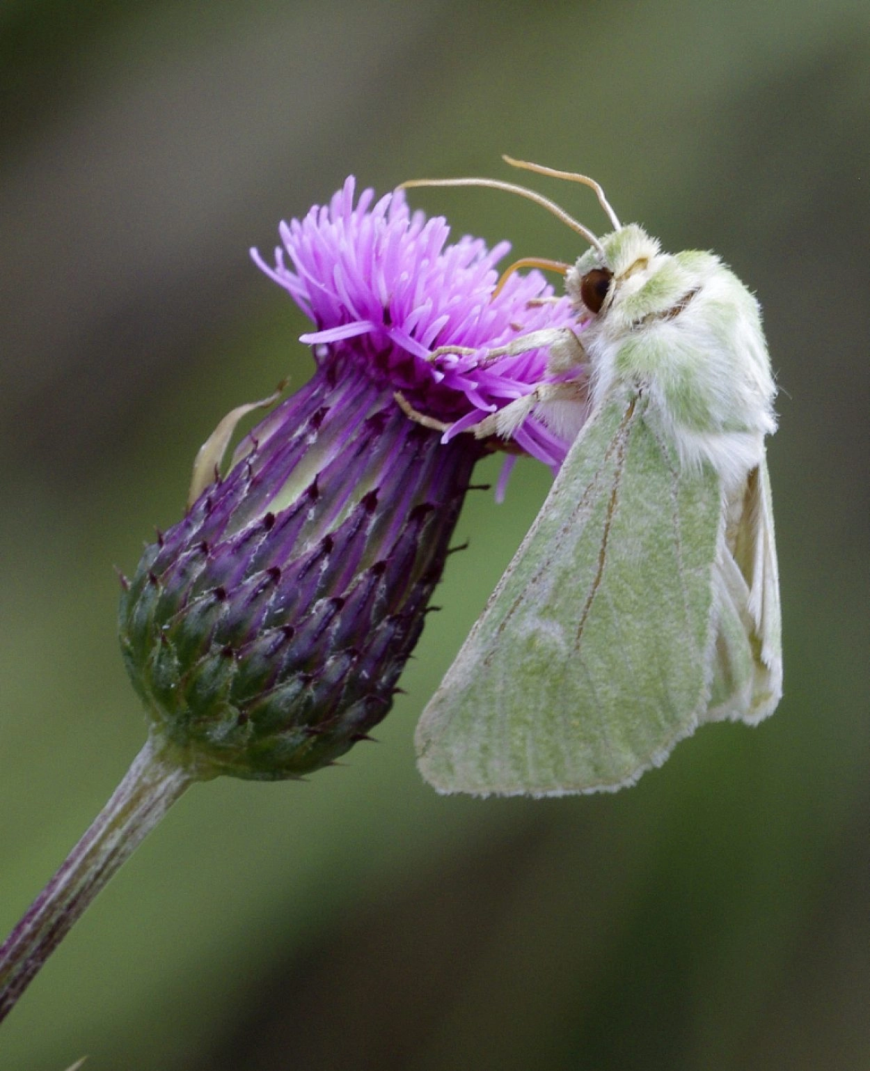 Eind juni-eind september in één generatie. De vlinders vliegen vanaf de schemering en komen op licht; overdag bezoeken ze bloemen van onder andere distels. Verse vlinders zijn soms ongeveer een uur na zonsondergang in de grasvegetatie te vinden, waar ze zitten te rusten om hun vleugels te laten drogen.