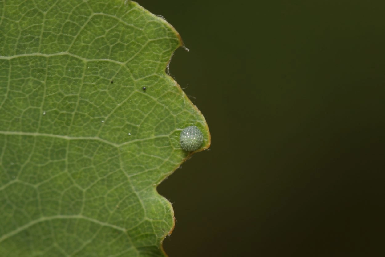 Het vrouwtje legt de eitjes op de top en de rand van bladeren van een tot drie meter hoge bomen die aan de rand van het bos groeien, liefst aan de oost- of zuidzijde. Bladeren van de onderste en buitenste takken hebben de voorkeur.