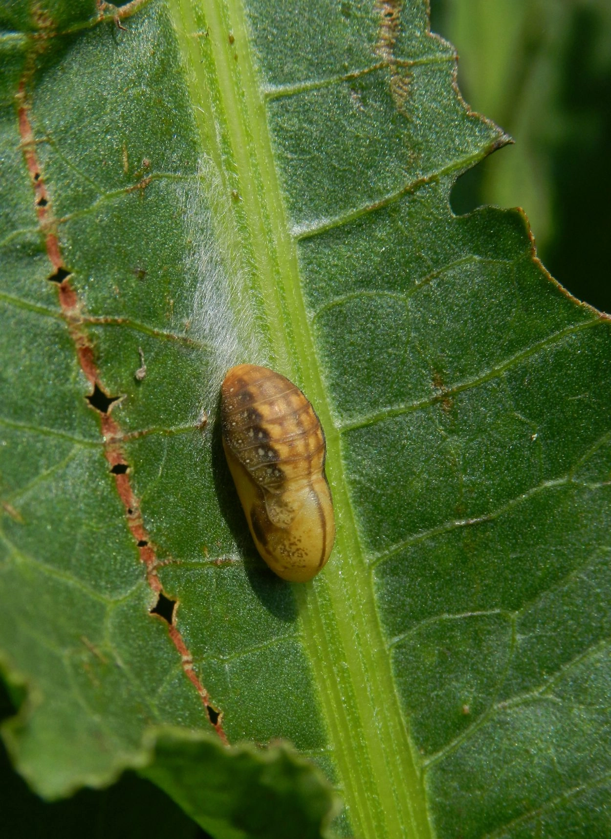 Rups: eind juli-begin juli. De rupsen eten eerst van het bladweefsel aan de onderkant van de bladeren en veroorzaken daardoor zogenoemde 'vensters'. Grotere rupsen eten vooral van de bovenzijde van het blad. De rupsen hebben een voorkeur voor jonge gave bladeren. De soort overwintert als halfvolgroeide rups tussen verdorde bladeren of in de mos- en strooisellaag aan de voet van de waardplant. De verpopping vindt plaats op de waardplant. De eitjes zijn rond en plat met zes of zeven stervormige ribbels en zijn te vinden op bovenzijde van waterzuringbladeren langs een waterkant of op de overgang van ijl veenmosrietland naar rietland of hooiland.