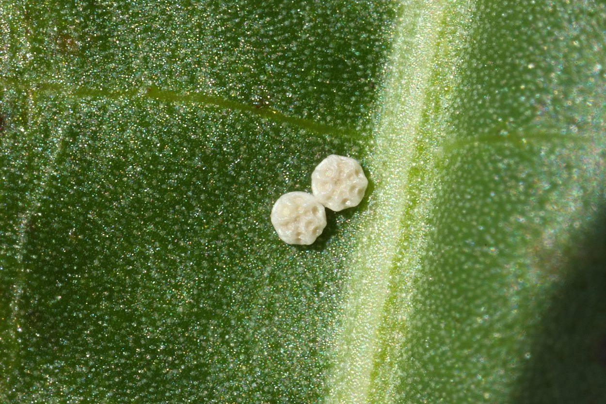 Meestal zetten de vrouwtjes de eitjes afzonderlijk af op de bovenkant van de bladeren. De voorkeur gaat uit naar planten die bijvoorbeeld groeien langs een waterkant of op de overgang van ijl veenmosrietland naar rietland of hooiland. Het kan voorkomen dat op een plant meer dan veertig eitjes worden afgezet.