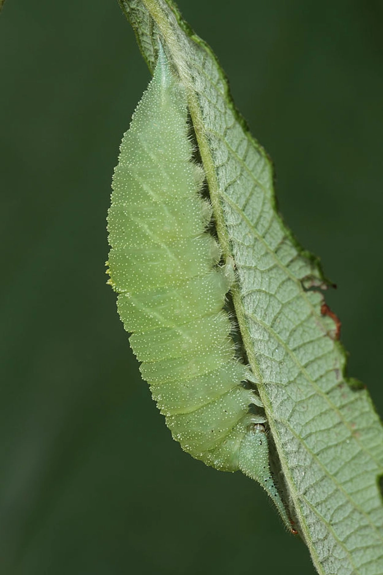 De eitjes worden op de zonnigste momenten van de dag hoog in de bomen op beschaduwde bladeren afgezet. Dat moet niet alleen een warm plekje zijn, ook moet de luchtvochtigheid er hoog zijn. Daarom staan geschikte bomen op zonnige, beschutte plaatsen. Zij zetten de eitjes afzonderlijk af op de bovenkant van oude blaadjes in vier tot vijf meter hoge wilgen. Dit is vooral het geval bij kleine inhammen langs brede bospaden en bij luw gelegen bosranden.