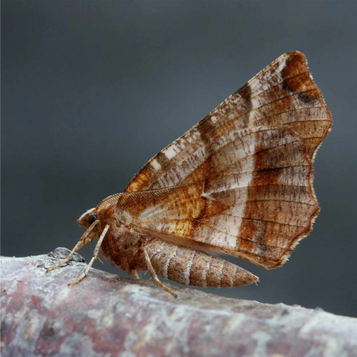 Het lindeherculesje (S. lunularia) en de halvemaanvlinder (S. tetralunaria) rusten met halfopen gehouden vleugels.