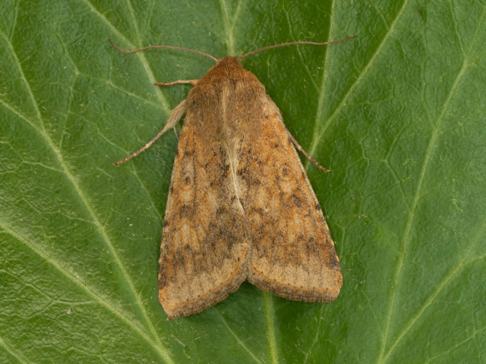 Voorvleugellengte: 16-19 mm. De voorvleugel van deze variabele uil loopt uiteen van zandkleurig tot paarsachtig bruin. Sommige exemplaren hebben een nauwelijks zichtbare tekening, maar bij sommige lichte vormen is de tekening juist vrij duidelijk. Tussen de buitenste dwarslijn en de golflijn bevindt zich doorgaans een donkerdere band en de dwarslijnen zijn, indien aanwezig, geschulpt. De achtervleugel heeft een brede zwarte zoom.