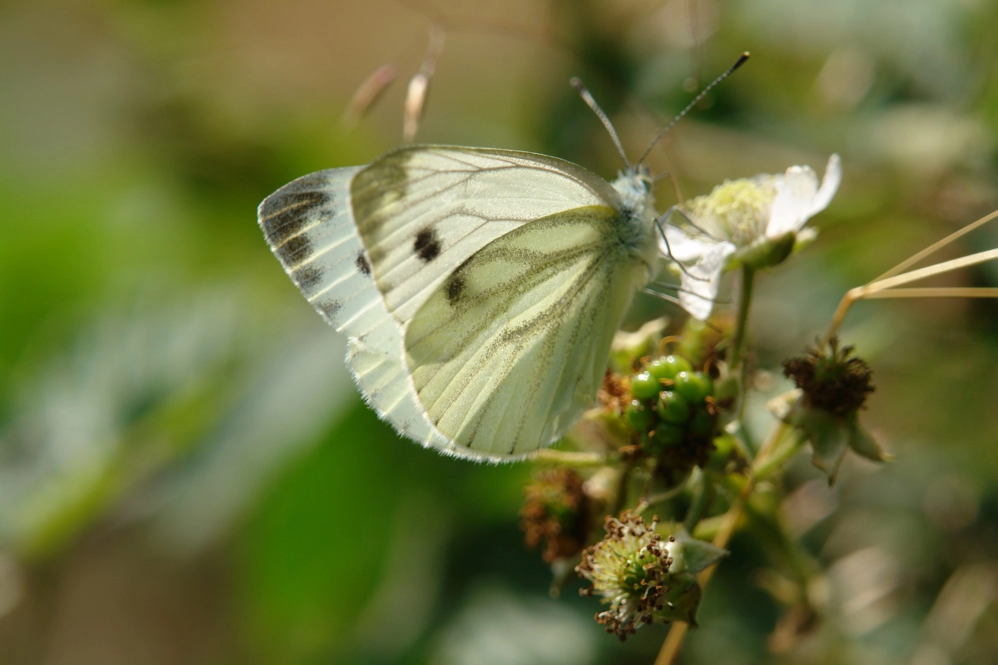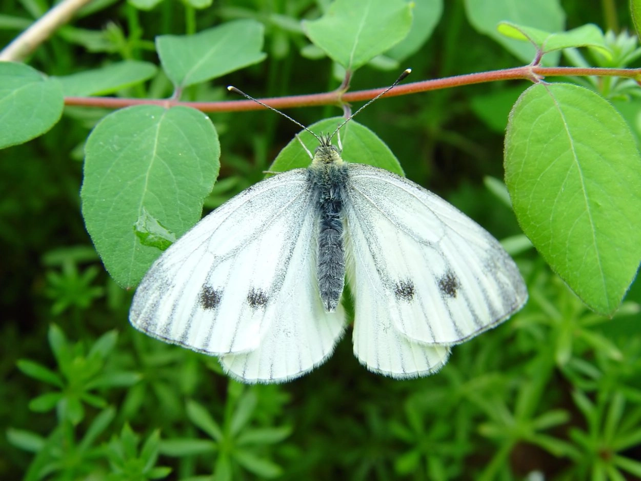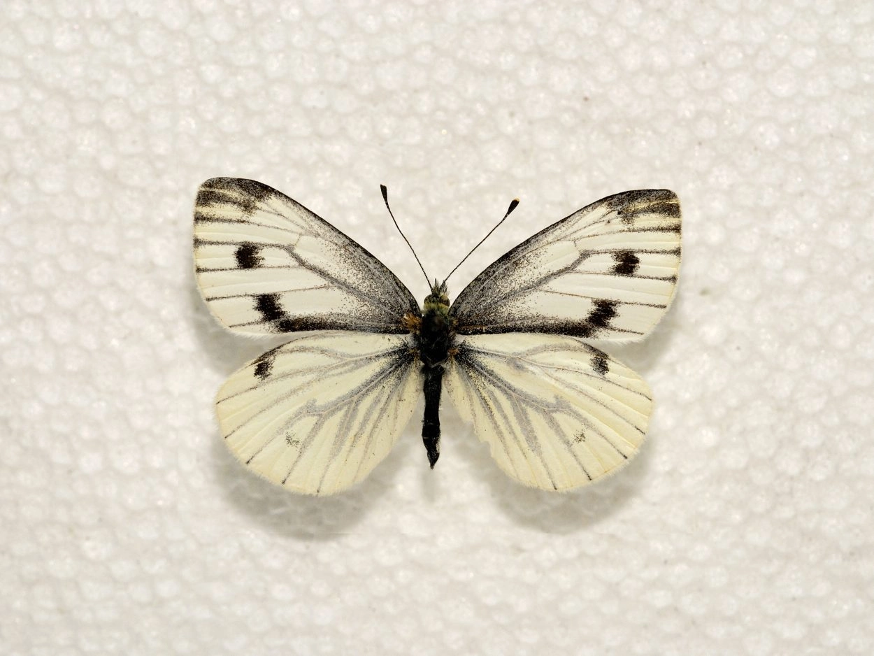 Klein koolwitje (Pieris rapae).N.B.: vergelijk behalve de uiterlijke kenmerken ook de tijd van het jaar waarin de rupsen voorkomen, het habitat en de waardplant(en).
