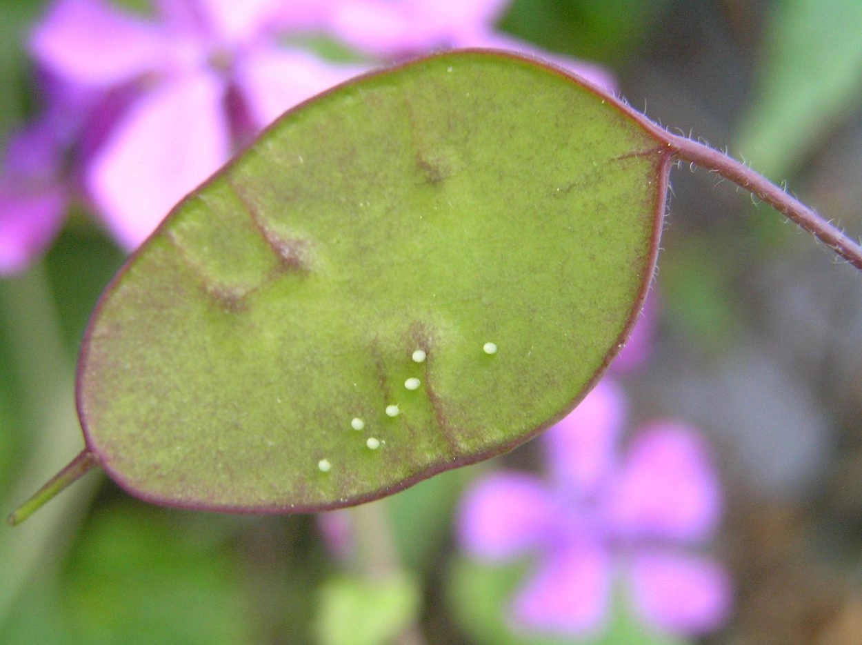 De vrouwtjes zetten de eitjes afzonderlijk af, bij voorkeur aan de onderzijde van bladeren van kleinere waardplanten. Daarvoor banen zij zich een weg door de vegetatie om onder de plant te komen.