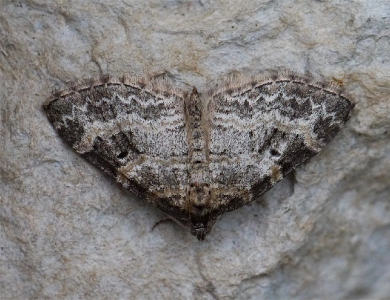 Zie de donkere ogentroostspanner (Perizoma bifaciata).