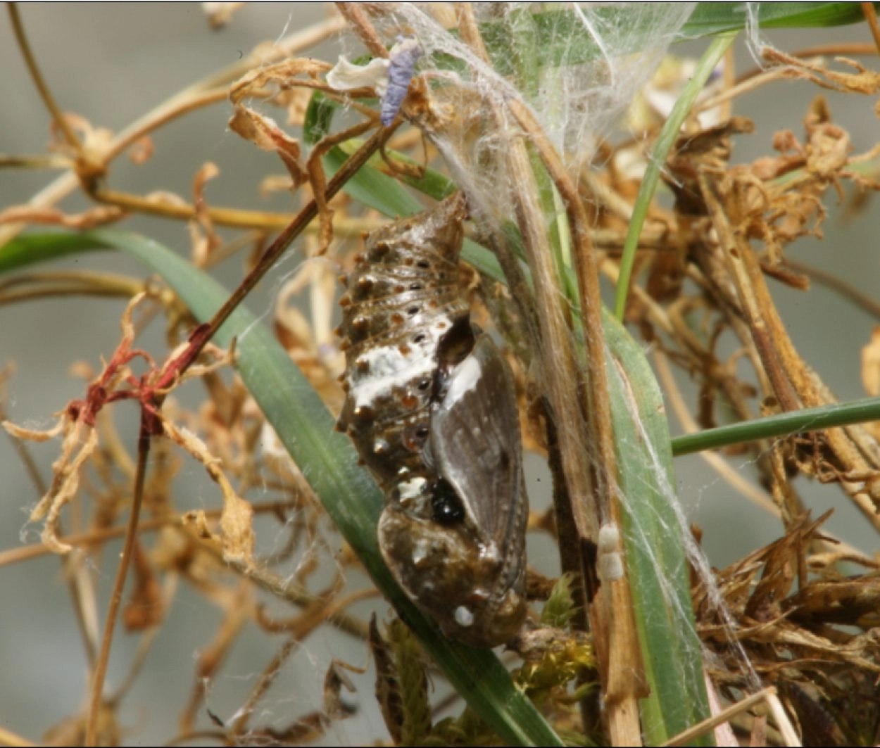 De rups zont veel, op een warm plekje in het zand, op stenen, afgevallen boomschors of planten. Op zachte winterdagen hervat hij de voedselopname. De pop hangt aan een stengel of aan de onderkant van een blad in een los spinsel vlak boven de grond. Merkwaardig is dat de rupsen die uit de eitjes van hetzelfde vrouwtje komen niet even snel groeien. Deze rupsen verpoppen dan ook verspreid over een periode van ongeveer vier weken, waardoor de vlinders onregelmatig verschijnen.