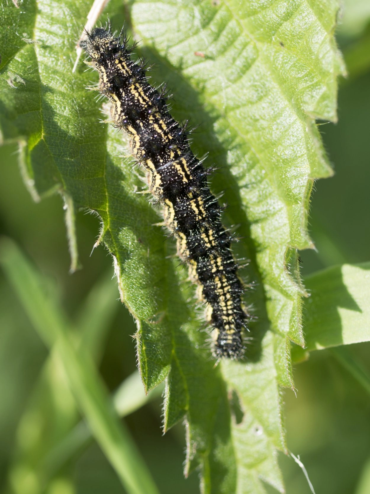 De rupsen spinnen enkele bladeren samen waarin ze gezamenlijk leven. De grootte van de groep varieert van enkele tot honderden rupsen. Wanneer de plant is kaalgevreten, zoeken ze een andere - liefst jonge - brandnetel op. Pas in het laatste stadium leven de rupsen meer solitair. Rupsen zijn gevoelig voor vorst; vooral nachtvorst in mei kan veel slachtoffers maken. De rupsen verpoppen zich aan plantenstengels of aan muren.